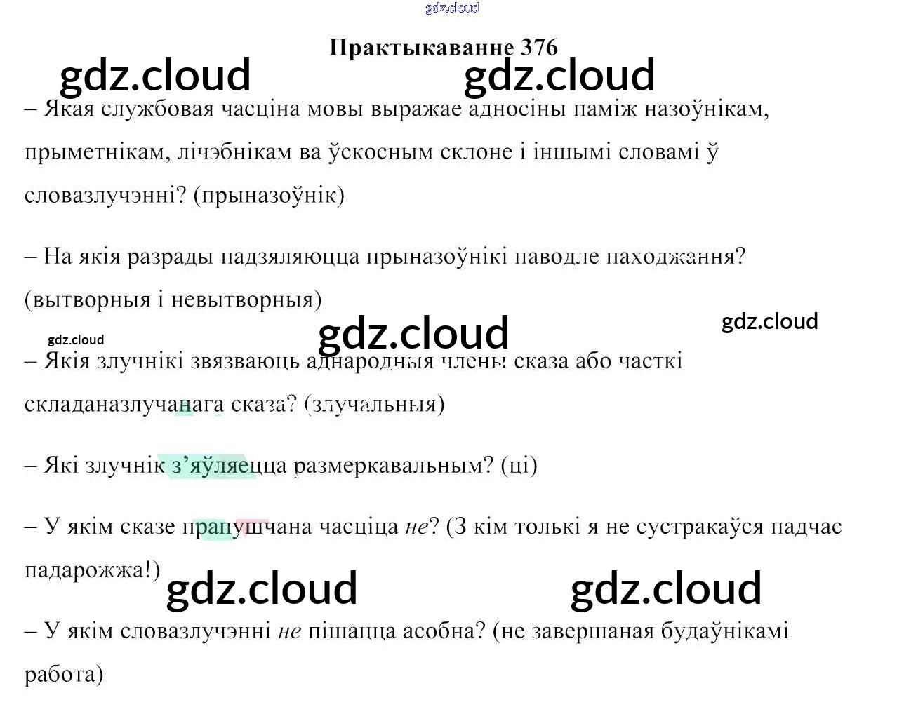 Ответ на задание 376 Учебник Белорусский язык за 7 (седьмой) класс Валочка, Язерская 2020