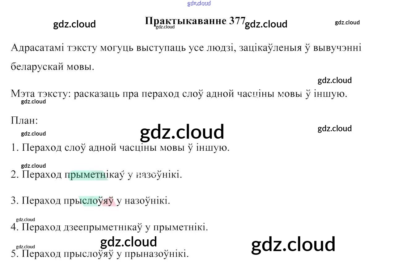 Ответ на задание 377 Учебник Белорусский язык за 7 (седьмой) класс Валочка, Язерская 2020