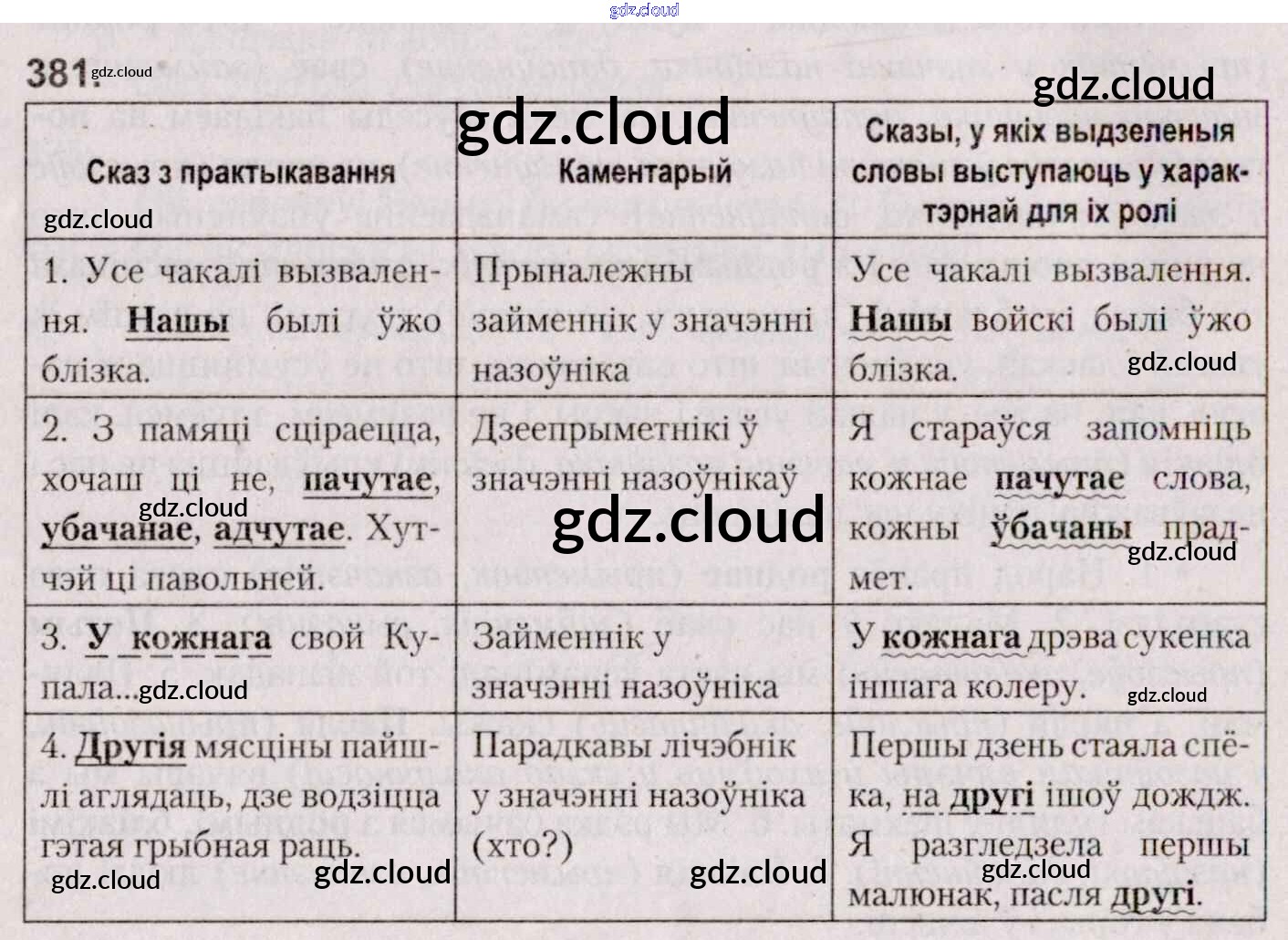Ответ на задание 381 Учебник Белорусский язык за 7 (седьмой) класс Валочка, Язерская 2020