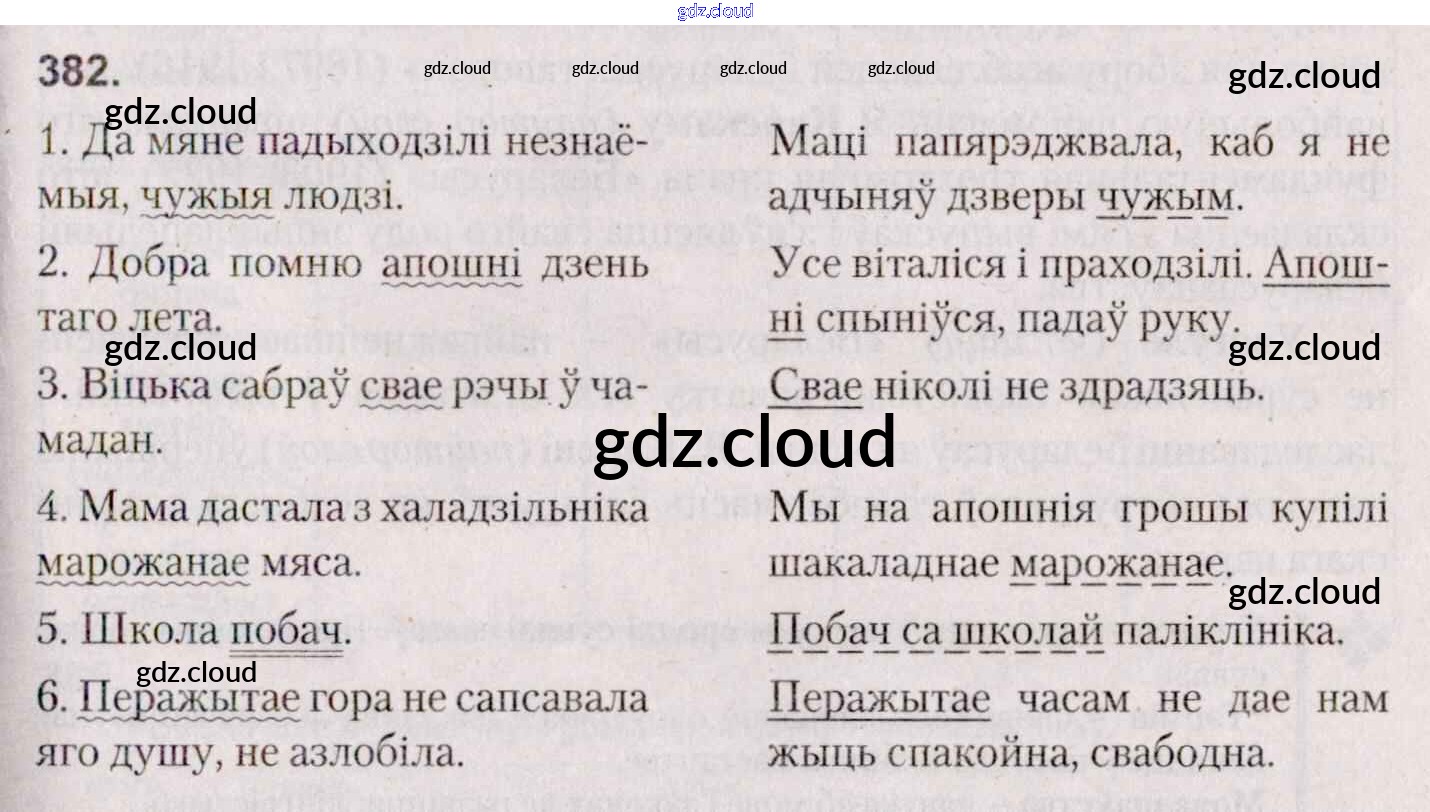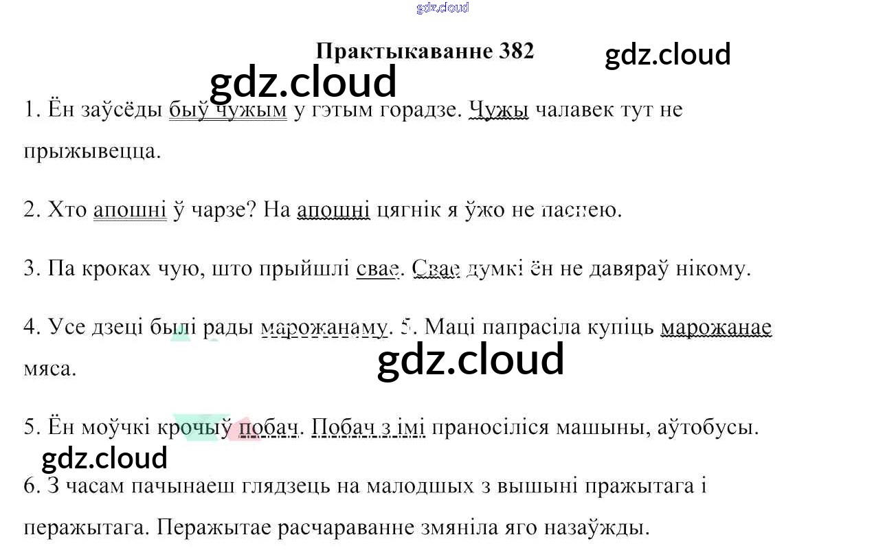 Ответ на задание 382 Учебник Белорусский язык за 7 (седьмой) класс Валочка, Язерская 2020