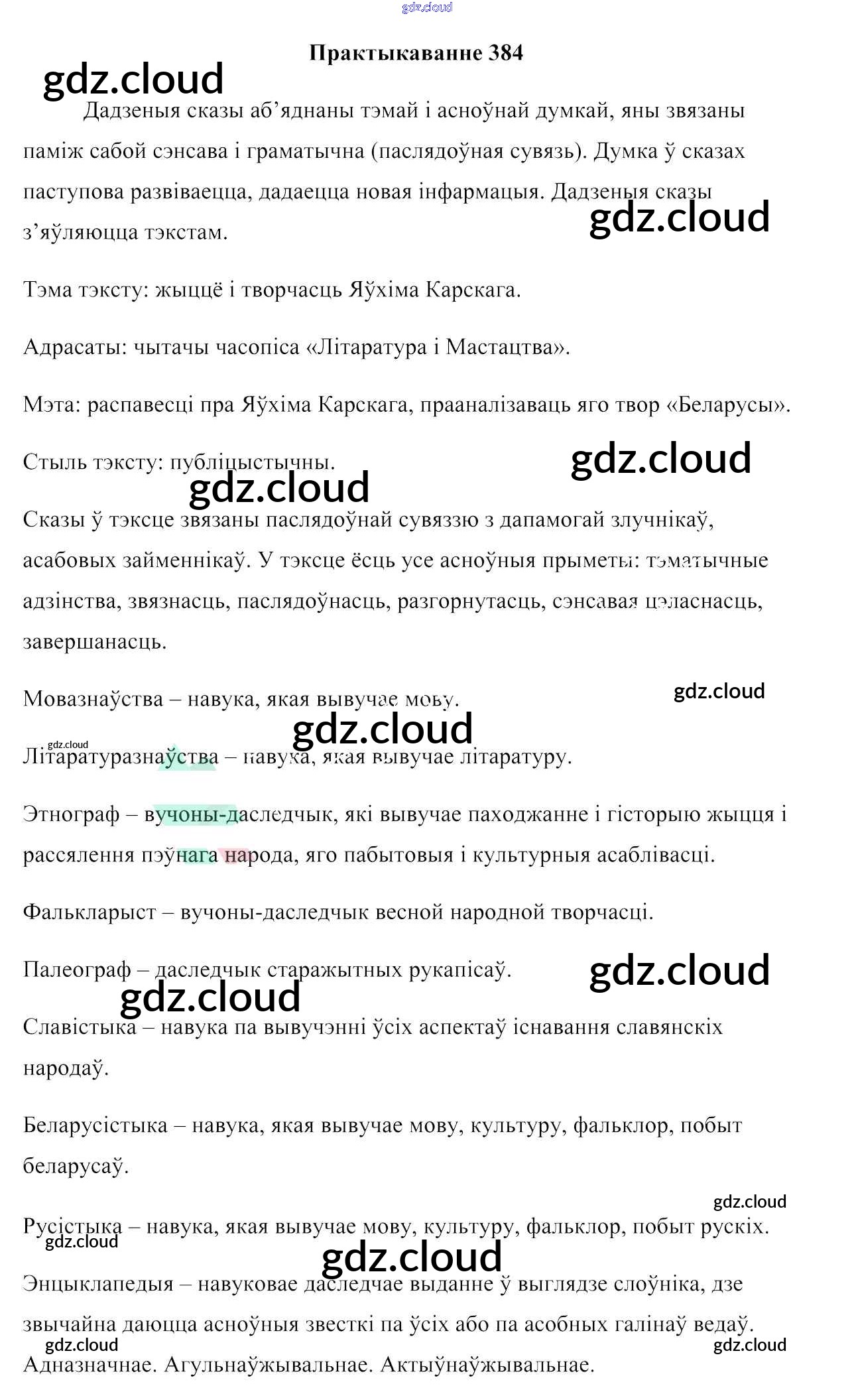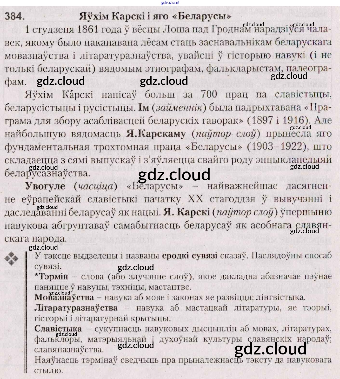 Ответ на задание 384 Учебник Белорусский язык за 7 (седьмой) класс Валочка, Язерская 2020