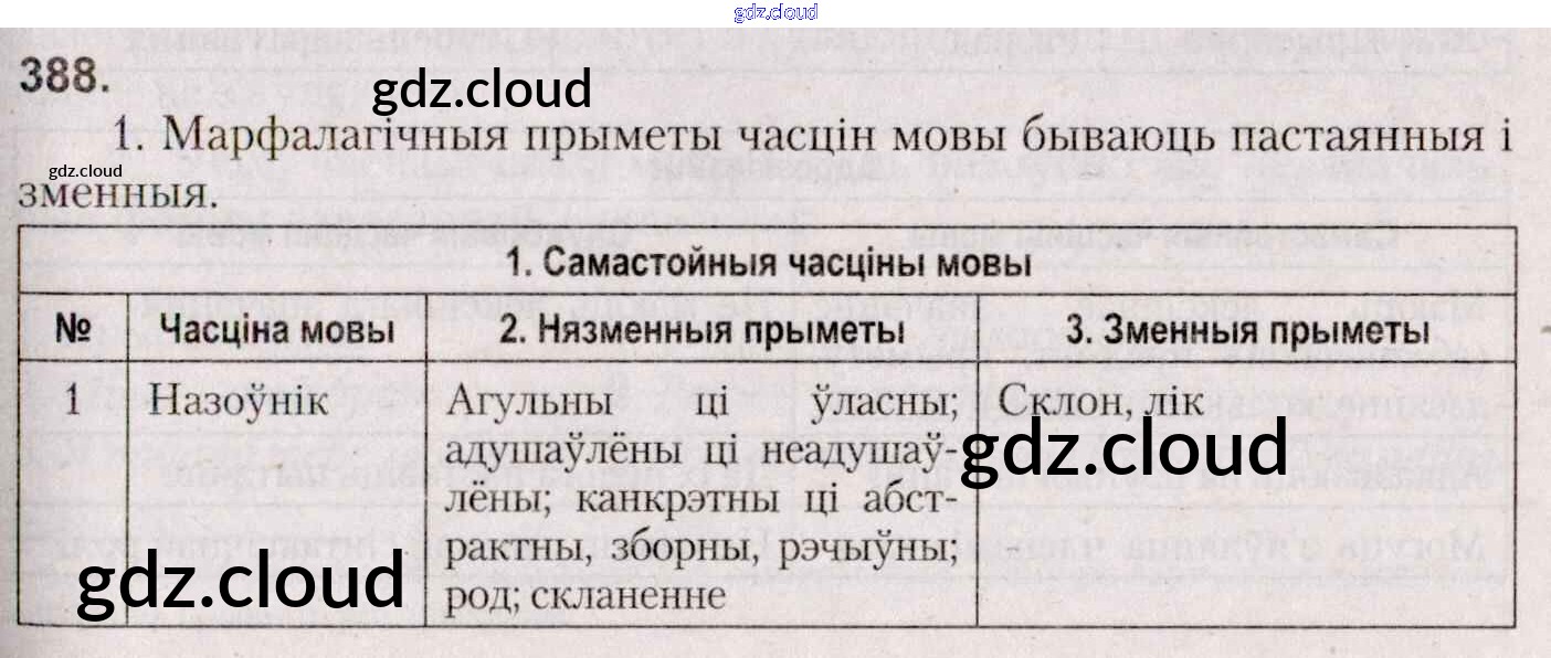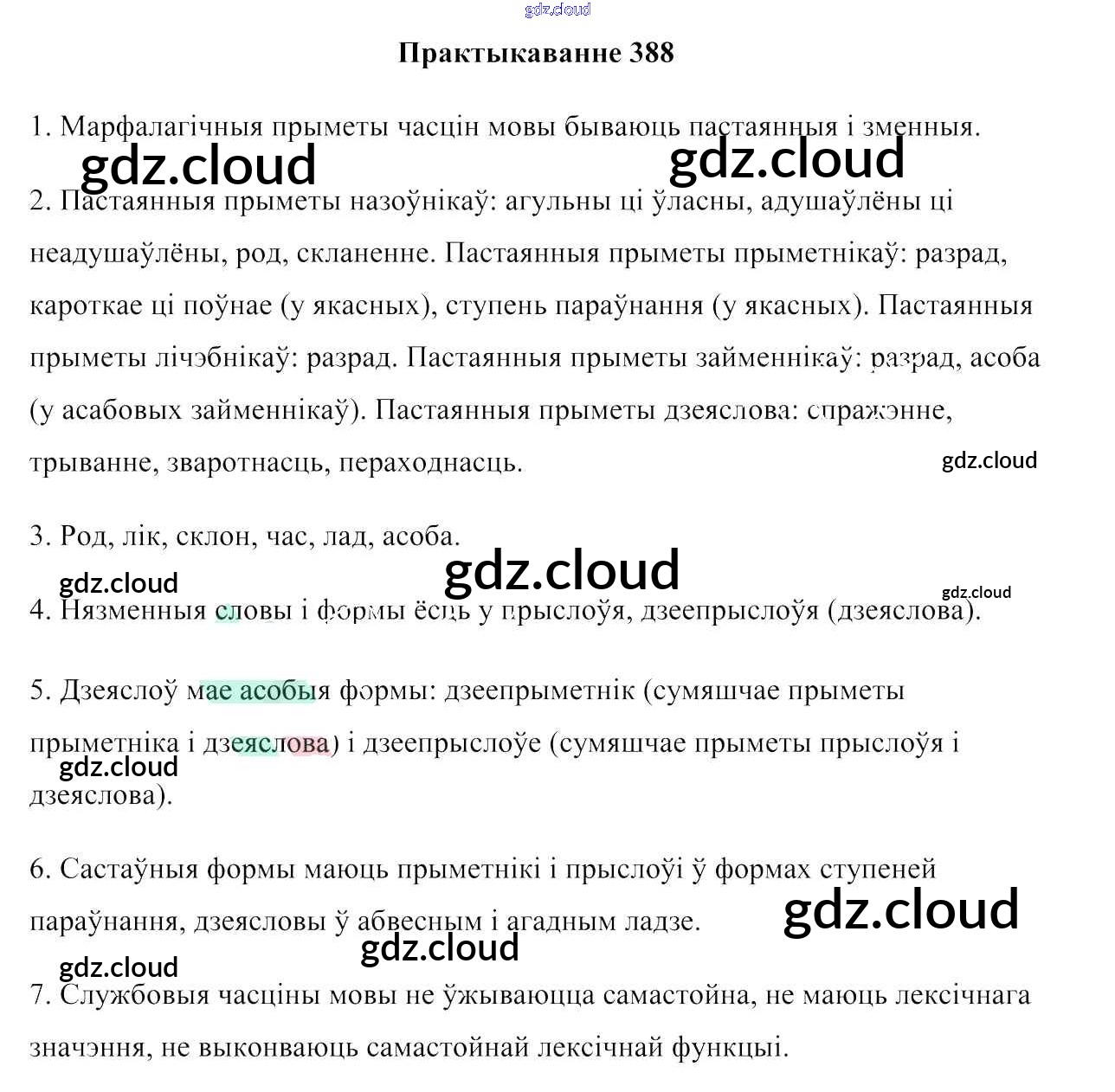 Ответ на задание 388 Учебник Белорусский язык за 7 (седьмой) класс Валочка, Язерская 2020
