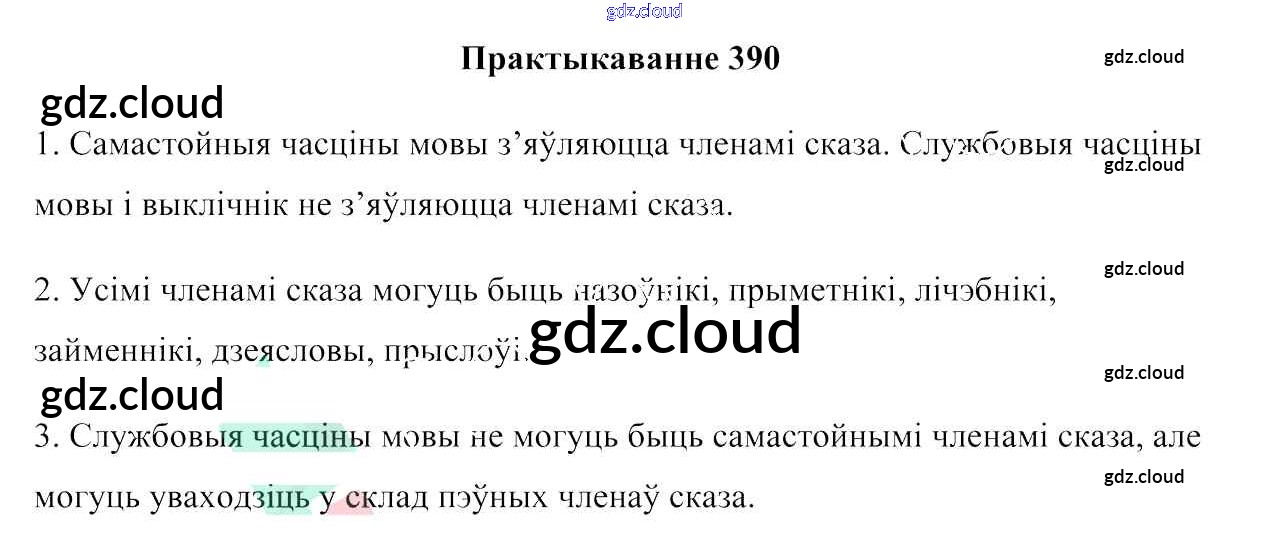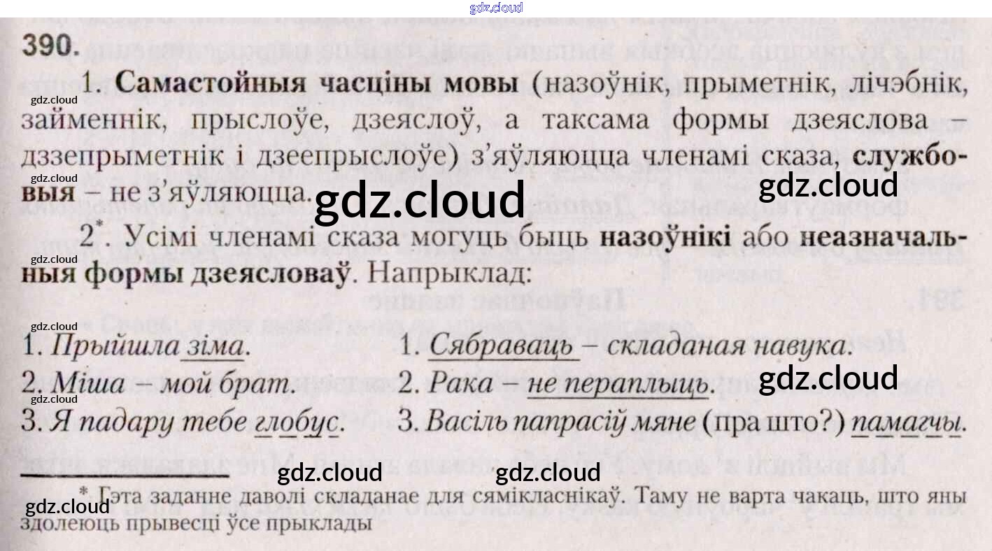 Ответ на задание 390 Учебник Белорусский язык за 7 (седьмой) класс Валочка, Язерская 2020
