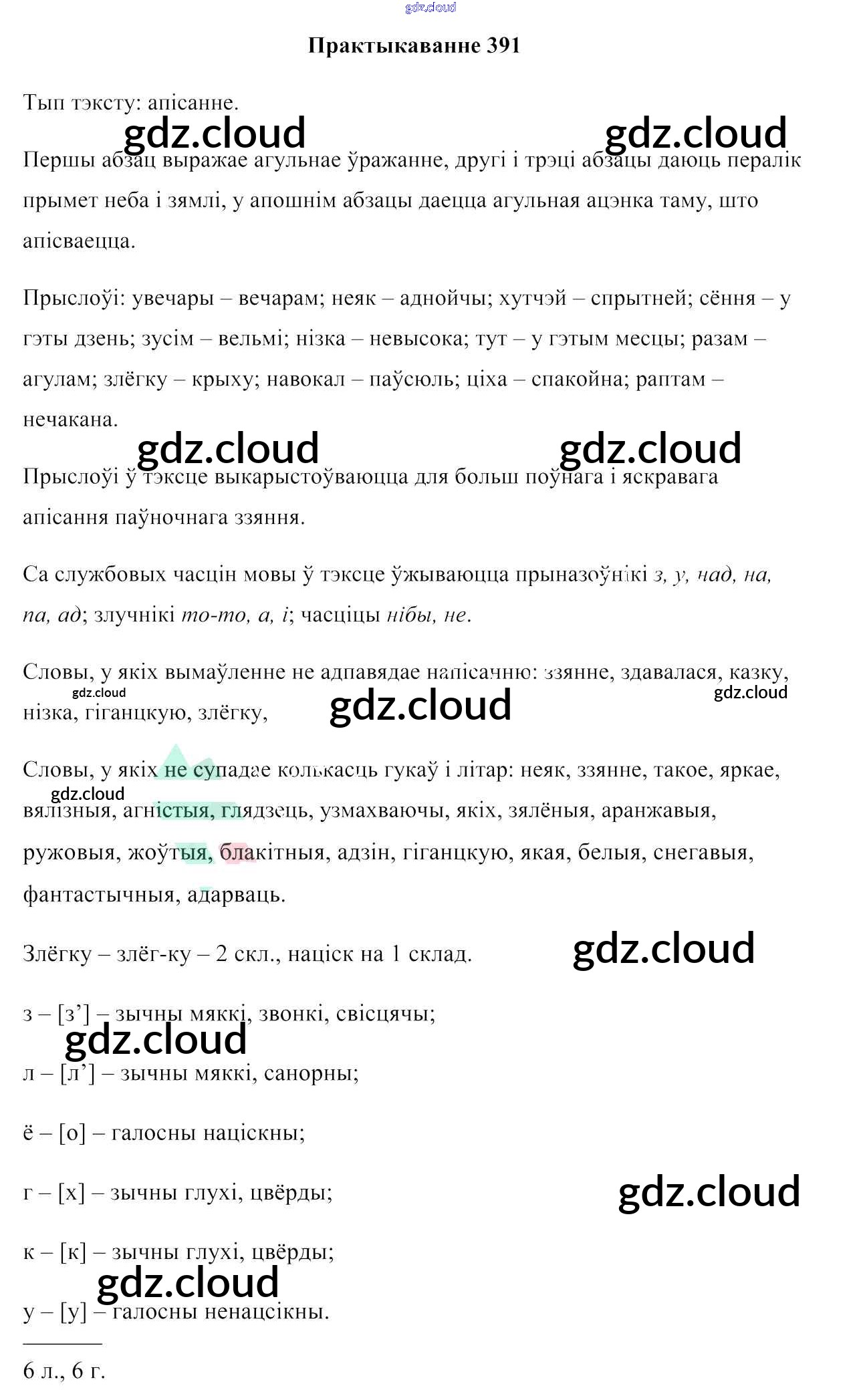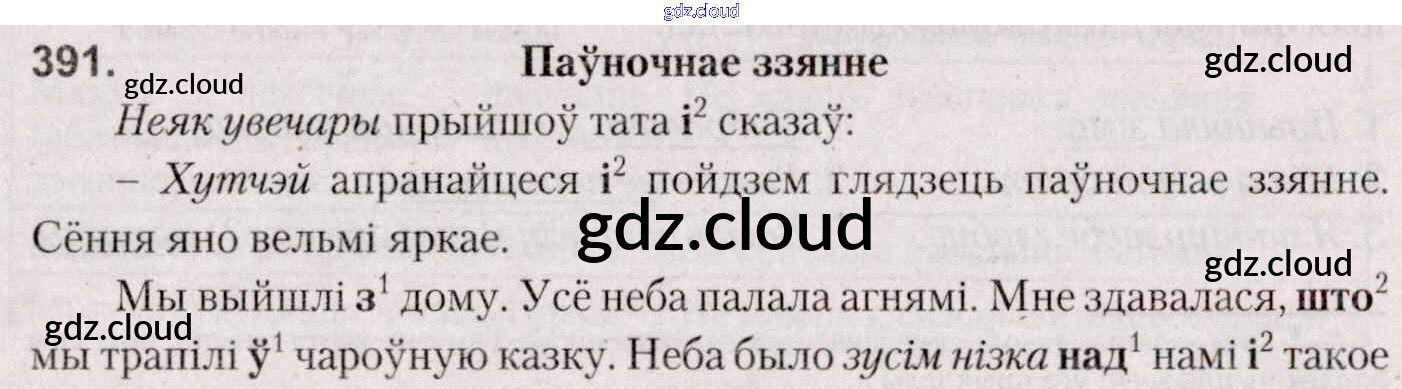 Ответ на задание 391 Учебник Белорусский язык за 7 (седьмой) класс Валочка, Язерская 2020