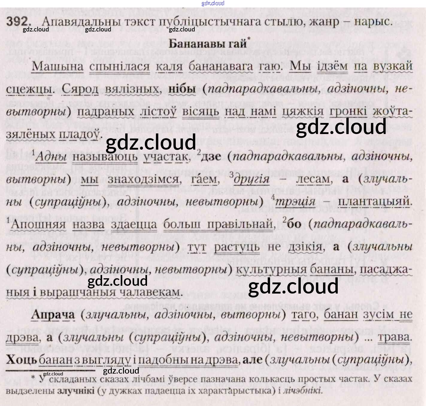 Ответ на задание 392 Учебник Белорусский язык за 7 (седьмой) класс Валочка, Язерская 2020