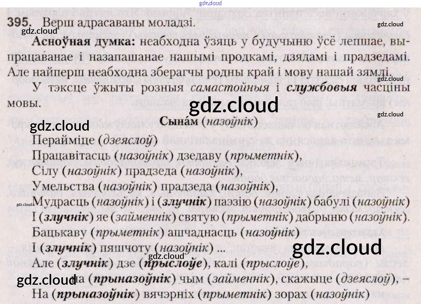 Ответ на задание 395 Учебник Белорусский язык за 7 (седьмой) класс Валочка, Язерская 2020