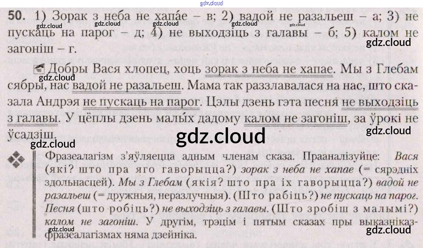 Ответ на задание 50 Учебник Белорусский язык за 7 (седьмой) класс Валочка, Язерская 2020