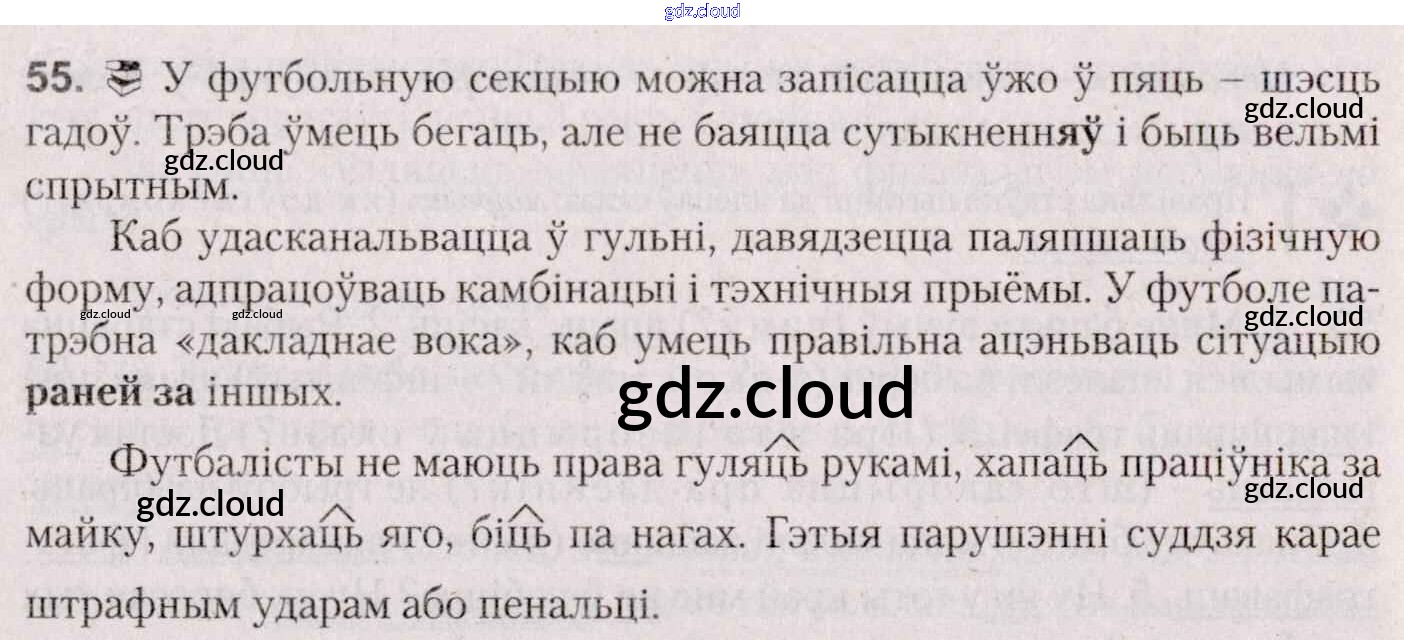 Ответ на задание 55 Учебник Белорусский язык за 7 (седьмой) класс Валочка, Язерская 2020