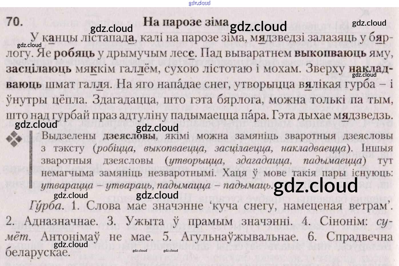 Ответ на задание 70 Учебник Белорусский язык за 7 (седьмой) класс Валочка, Язерская 2020