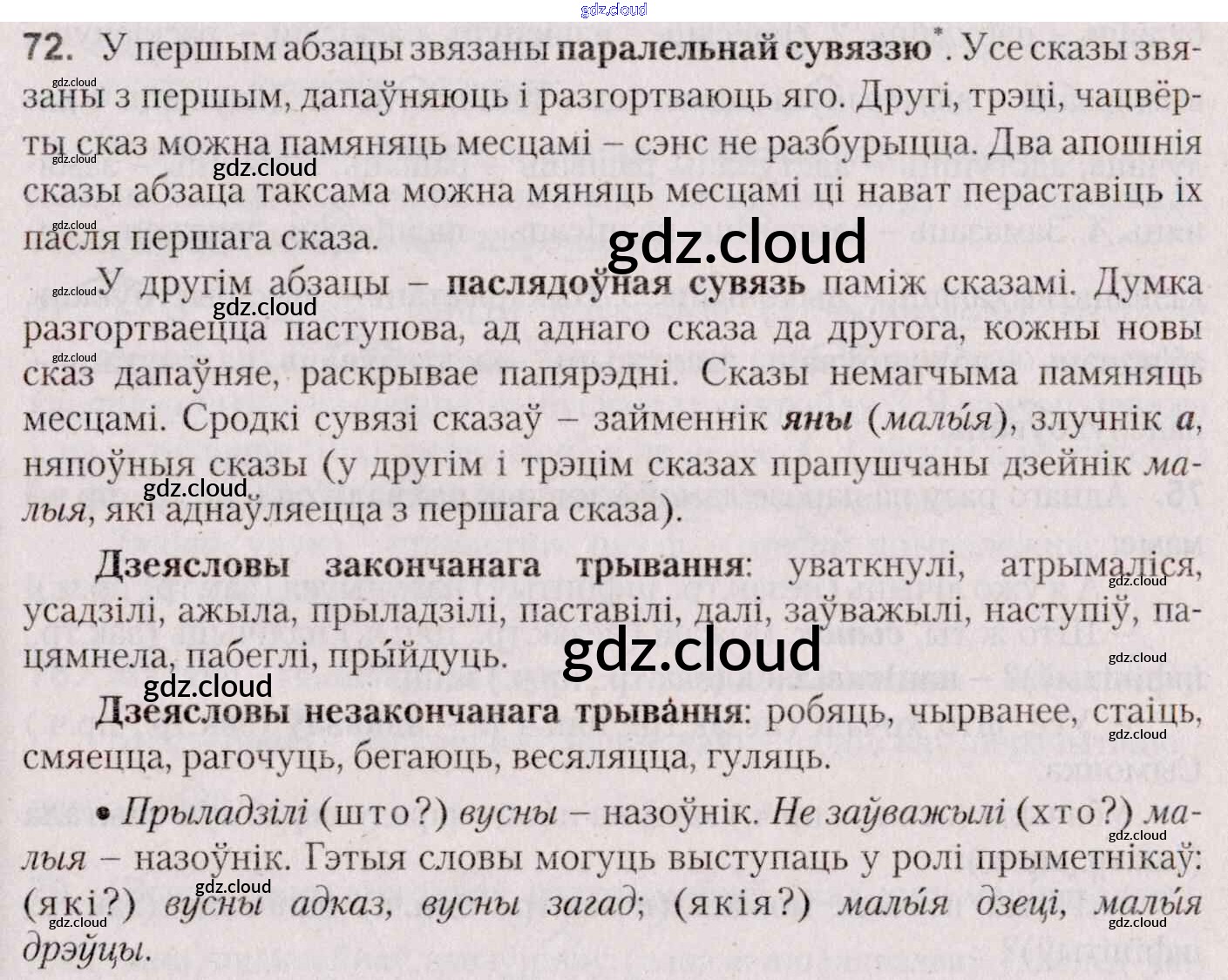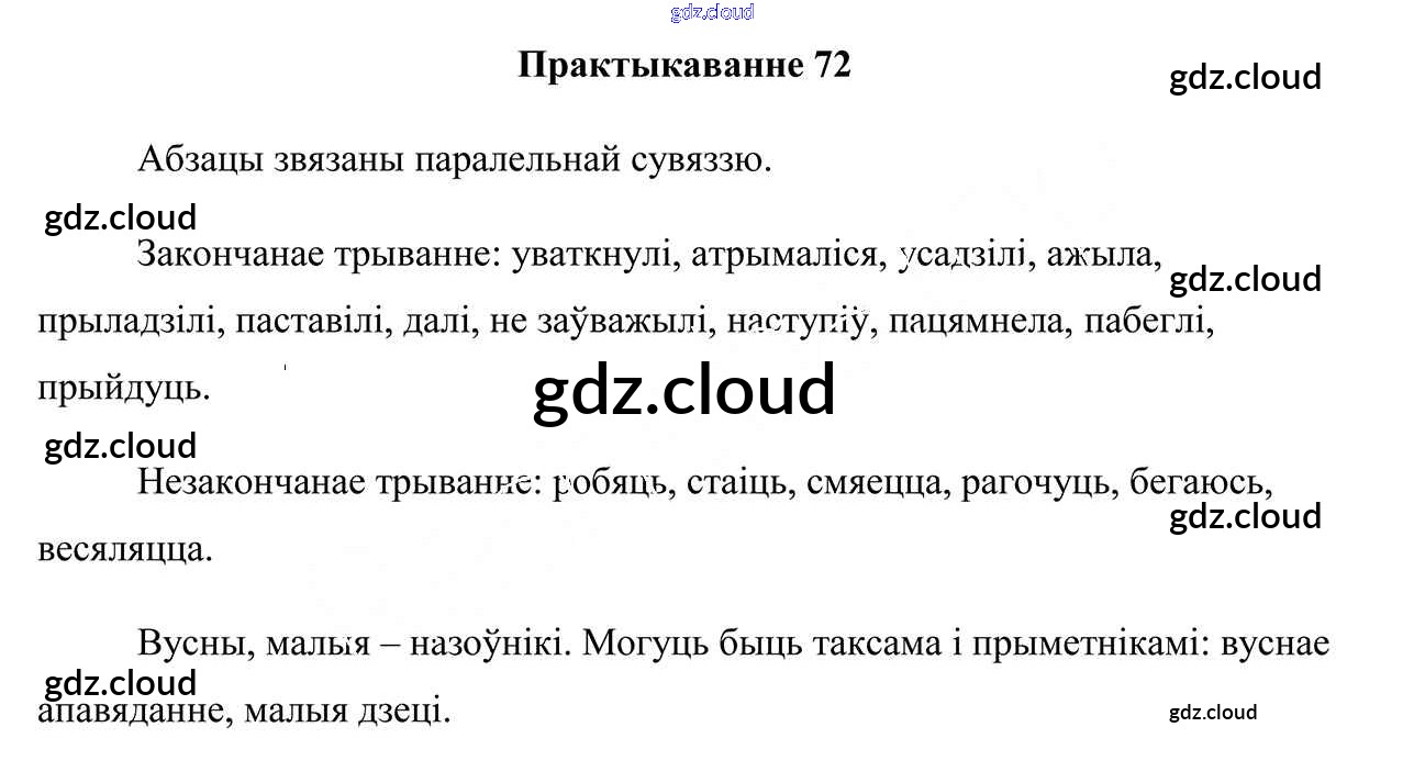 Ответ на задание 72 Учебник Белорусский язык за 7 (седьмой) класс Валочка, Язерская 2020