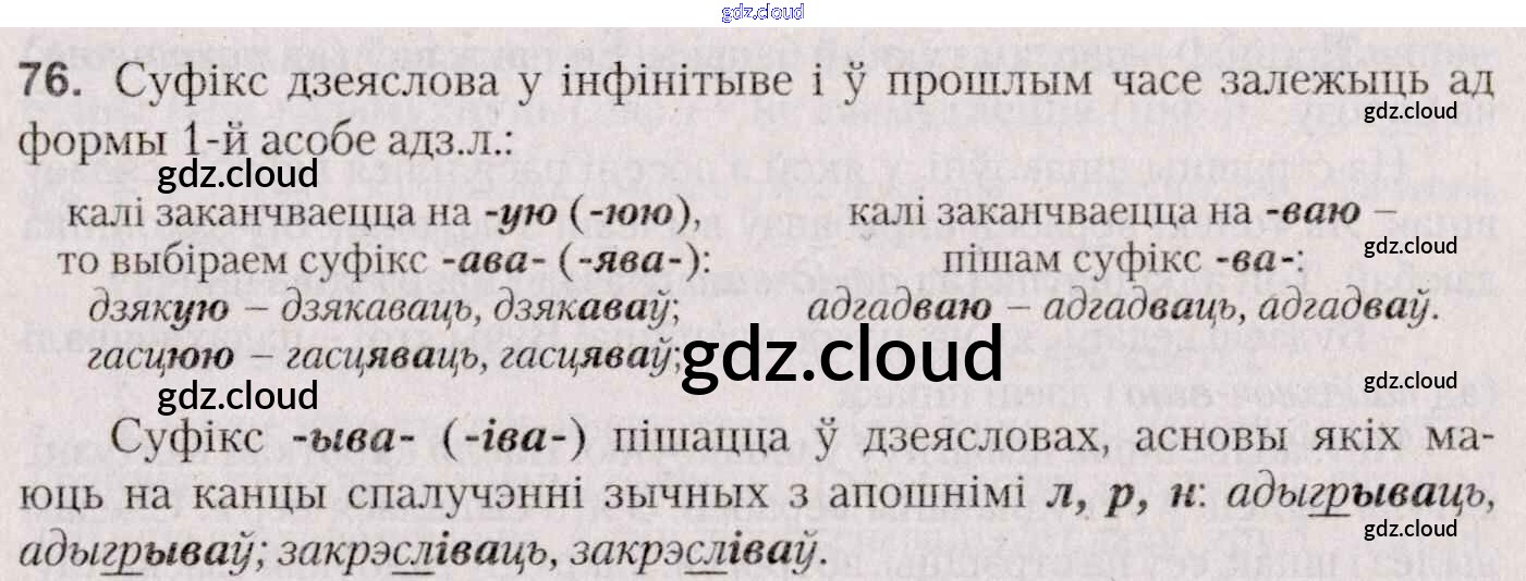 Ответ на задание 76 Учебник Белорусский язык за 7 (седьмой) класс Валочка, Язерская 2020
