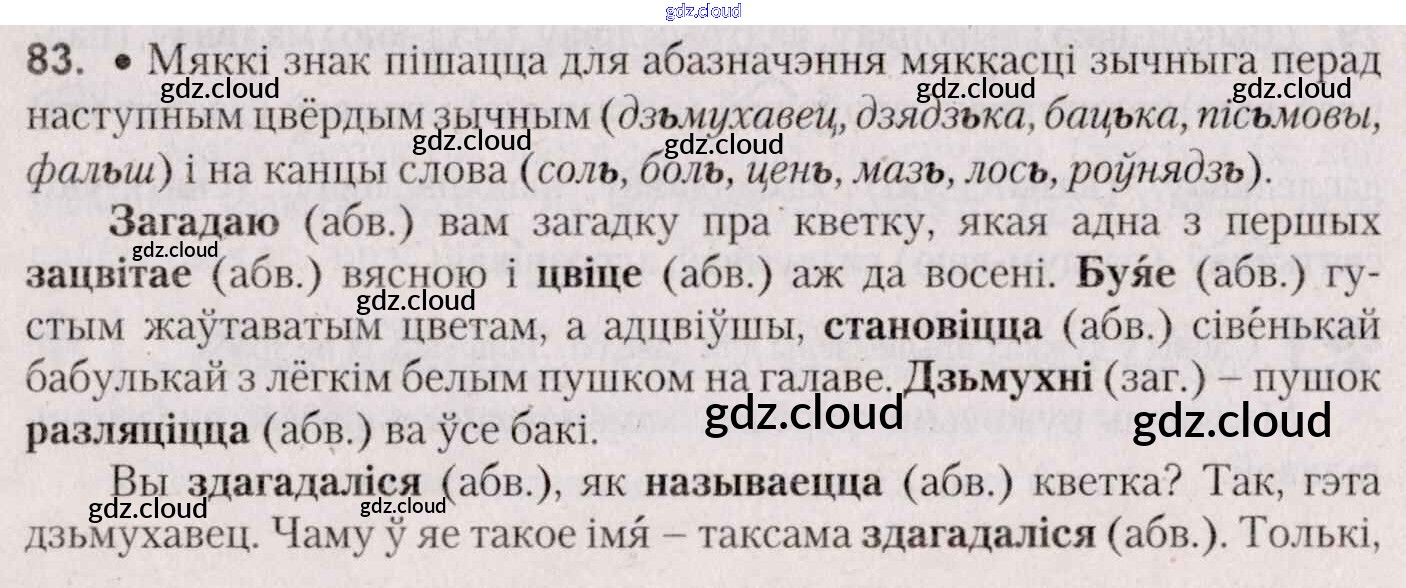 Ответ на задание 83 Учебник Белорусский язык за 7 (седьмой) класс Валочка, Язерская 2020