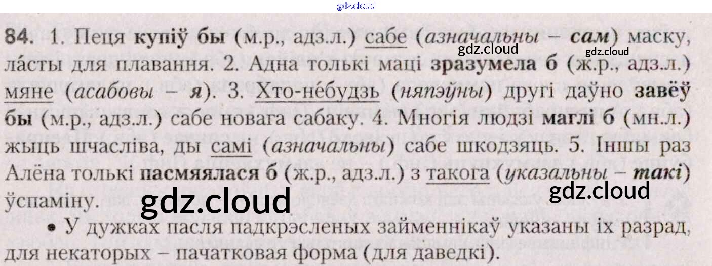 Ответ на задание 84 Учебник Белорусский язык за 7 (седьмой) класс Валочка, Язерская 2020