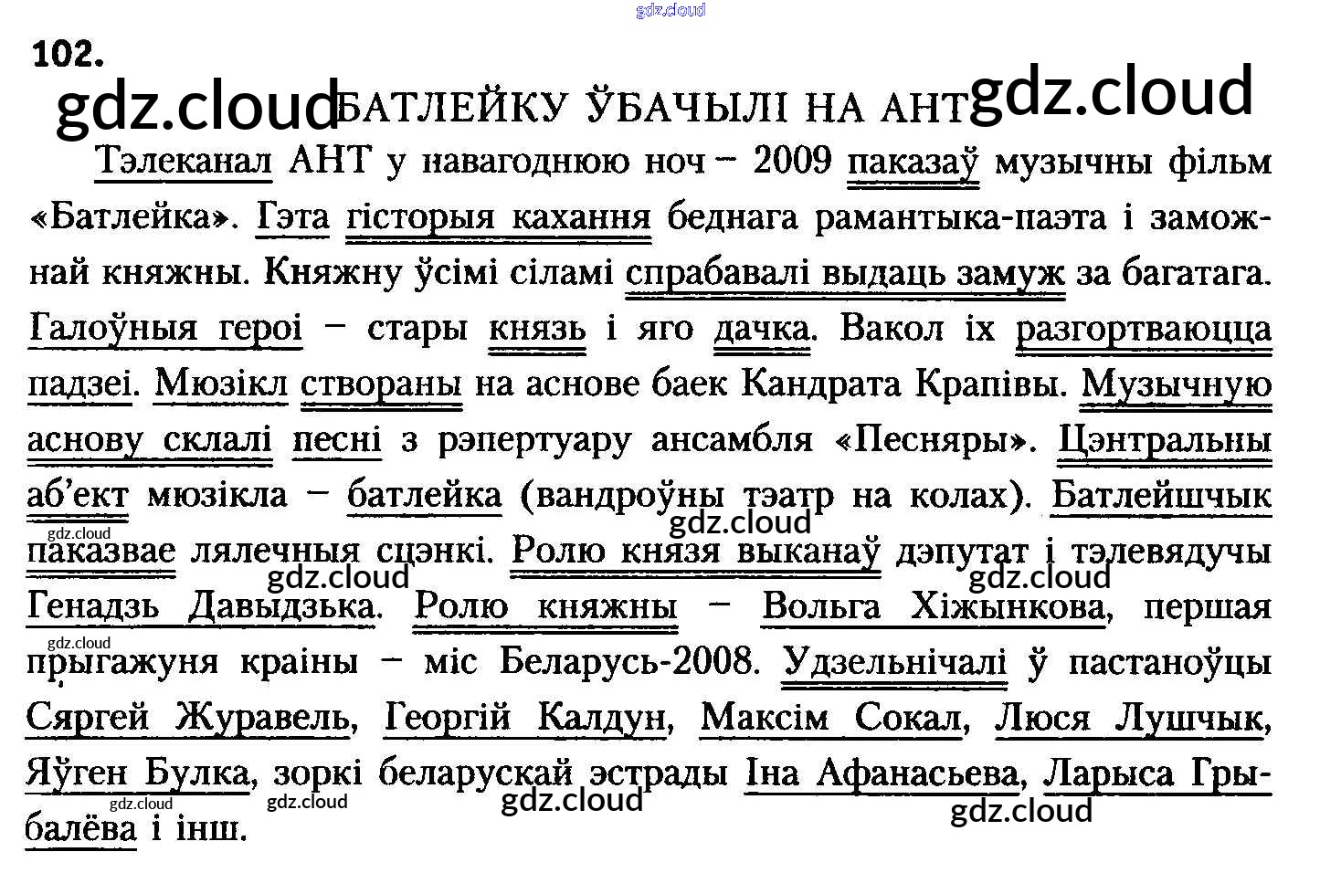 Ответ на задание 102 Учебник Белорусский язык за 8 (восьмой) класс Бадзевіч, Саматыя 2015