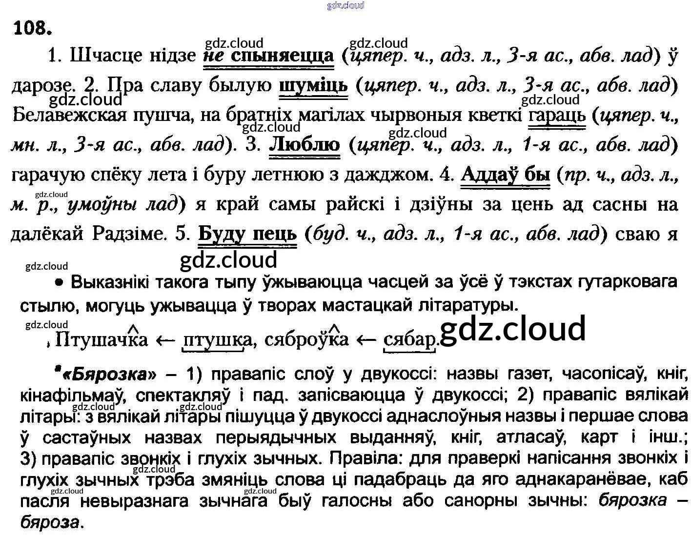 Ответ на задание 108 Учебник Белорусский язык за 8 (восьмой) класс Бадзевіч, Саматыя 2015