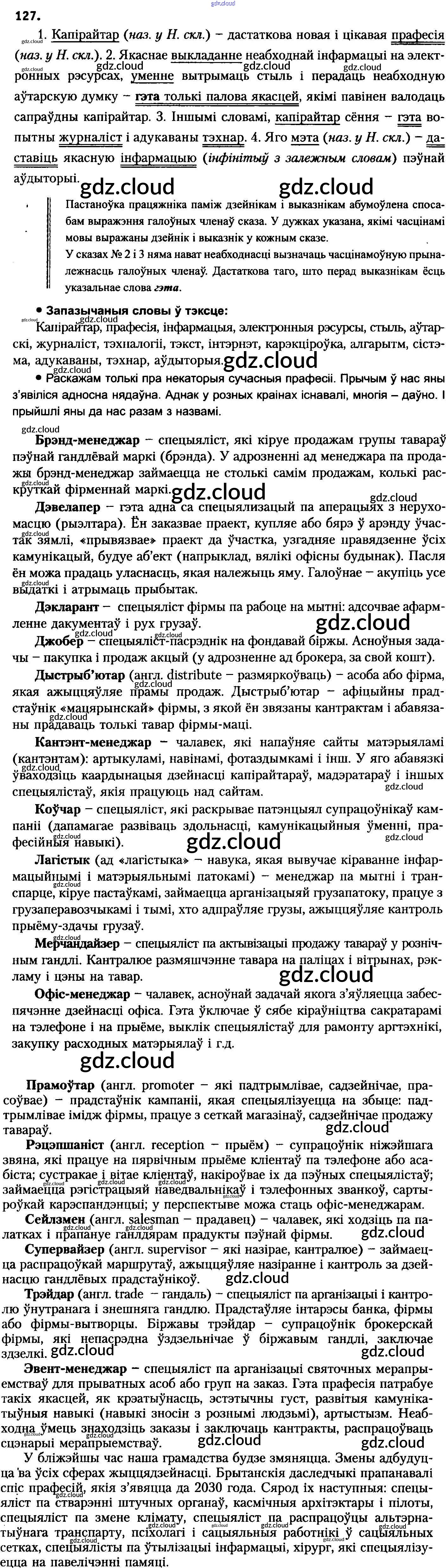 Ответ на задание 127 Учебник Белорусский язык за 8 (восьмой) класс Бадзевіч, Саматыя 2015