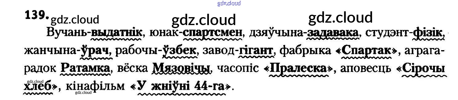 Ответ на задание 139 Учебник Белорусский язык за 8 (восьмой) класс Бадзевіч, Саматыя 2015