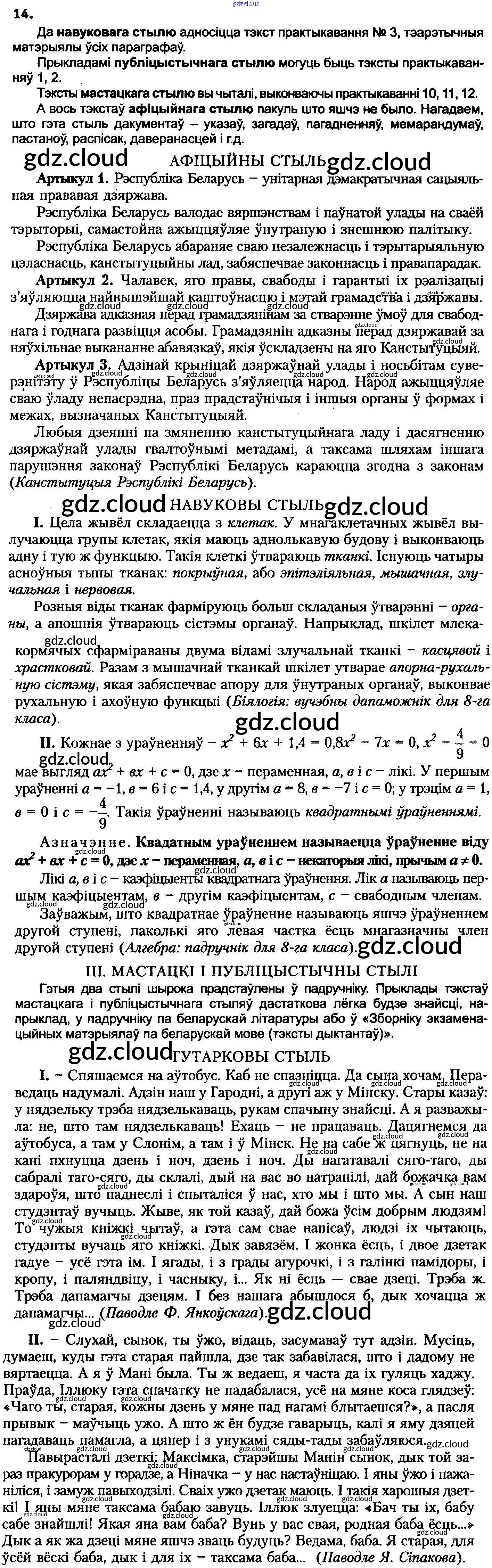 Ответ на задание 14 Учебник Белорусский язык за 8 (восьмой) класс Бадзевіч, Саматыя 2015 ФГОС онлайн и без номера телефона.