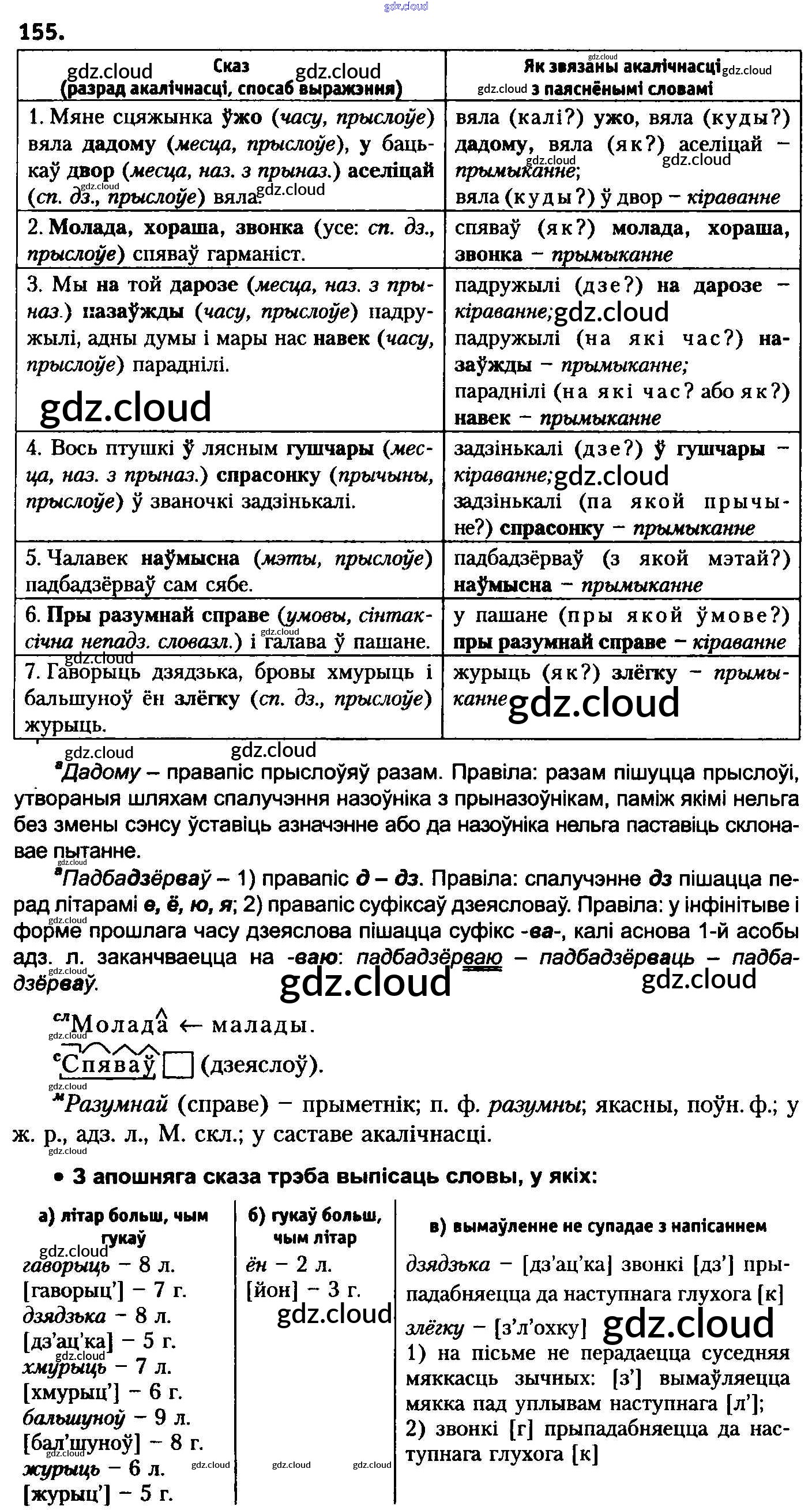 Ответ на задание 155 Учебник Белорусский язык за 8 (восьмой) класс Бадзевіч, Саматыя 2015