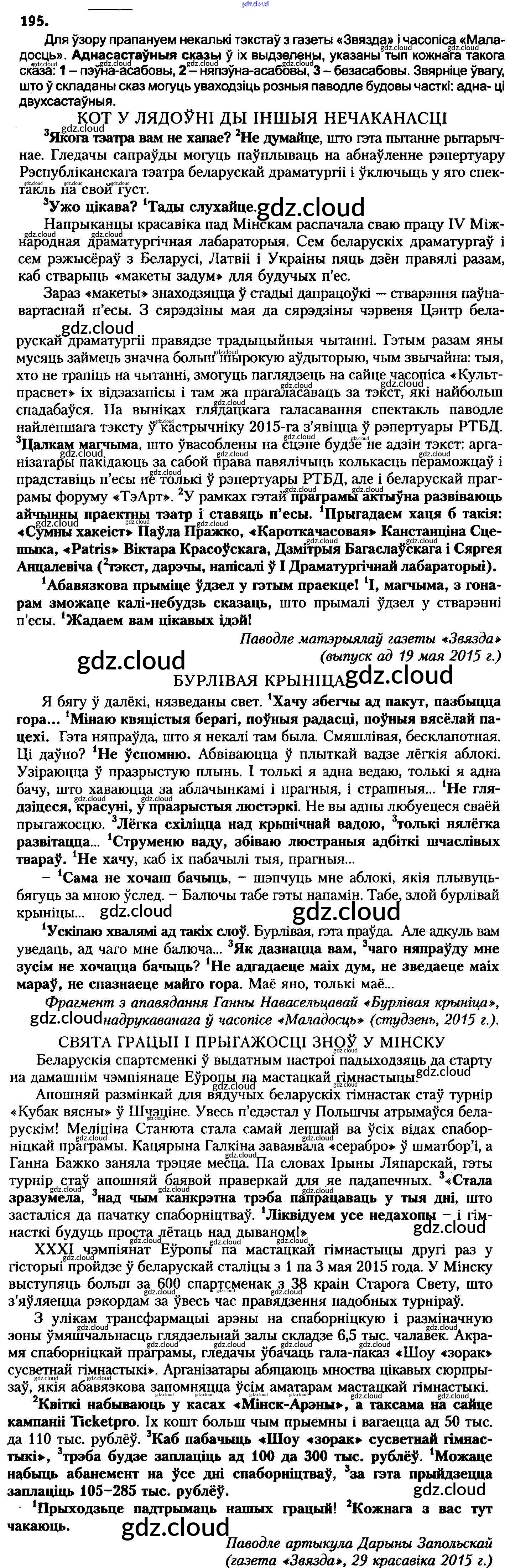 Ответ на задание 195 Учебник Белорусский язык за 8 (восьмой) класс Бадзевіч, Саматыя 2015