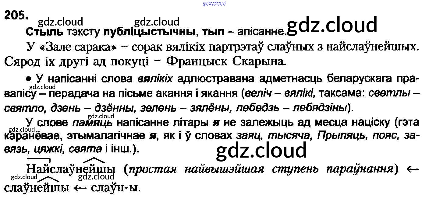 Ответ на задание 205 Учебник Белорусский язык за 8 (восьмой) класс Бадзевіч, Саматыя 2015