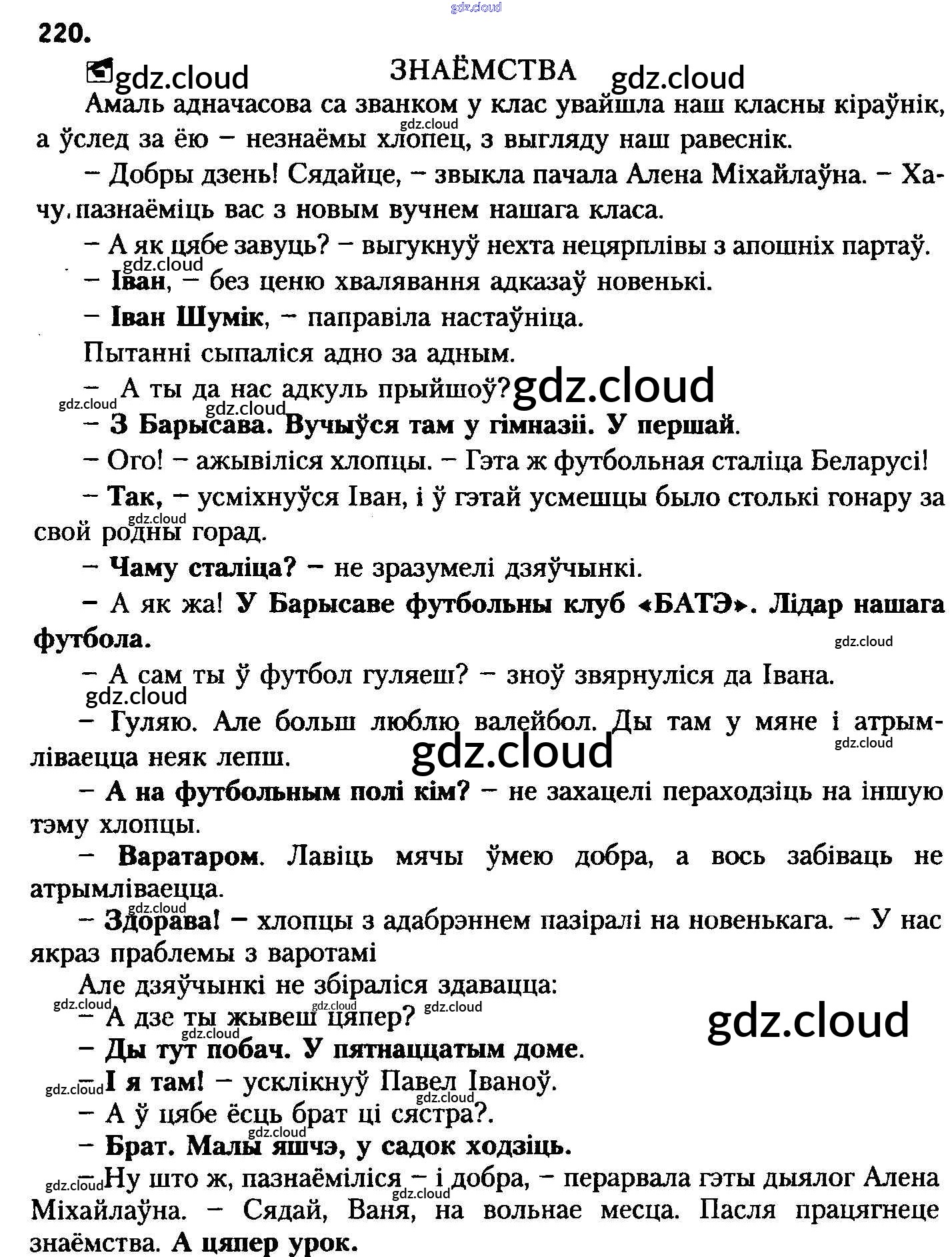 Ответ на задание 220 Учебник Белорусский язык за 8 (восьмой) класс Бадзевіч, Саматыя 2015