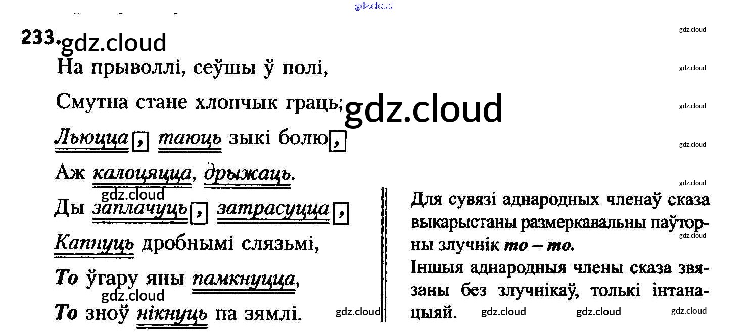 Ответ на задание 233 Учебник Белорусский язык за 8 (восьмой) класс Бадзевіч, Саматыя 2015