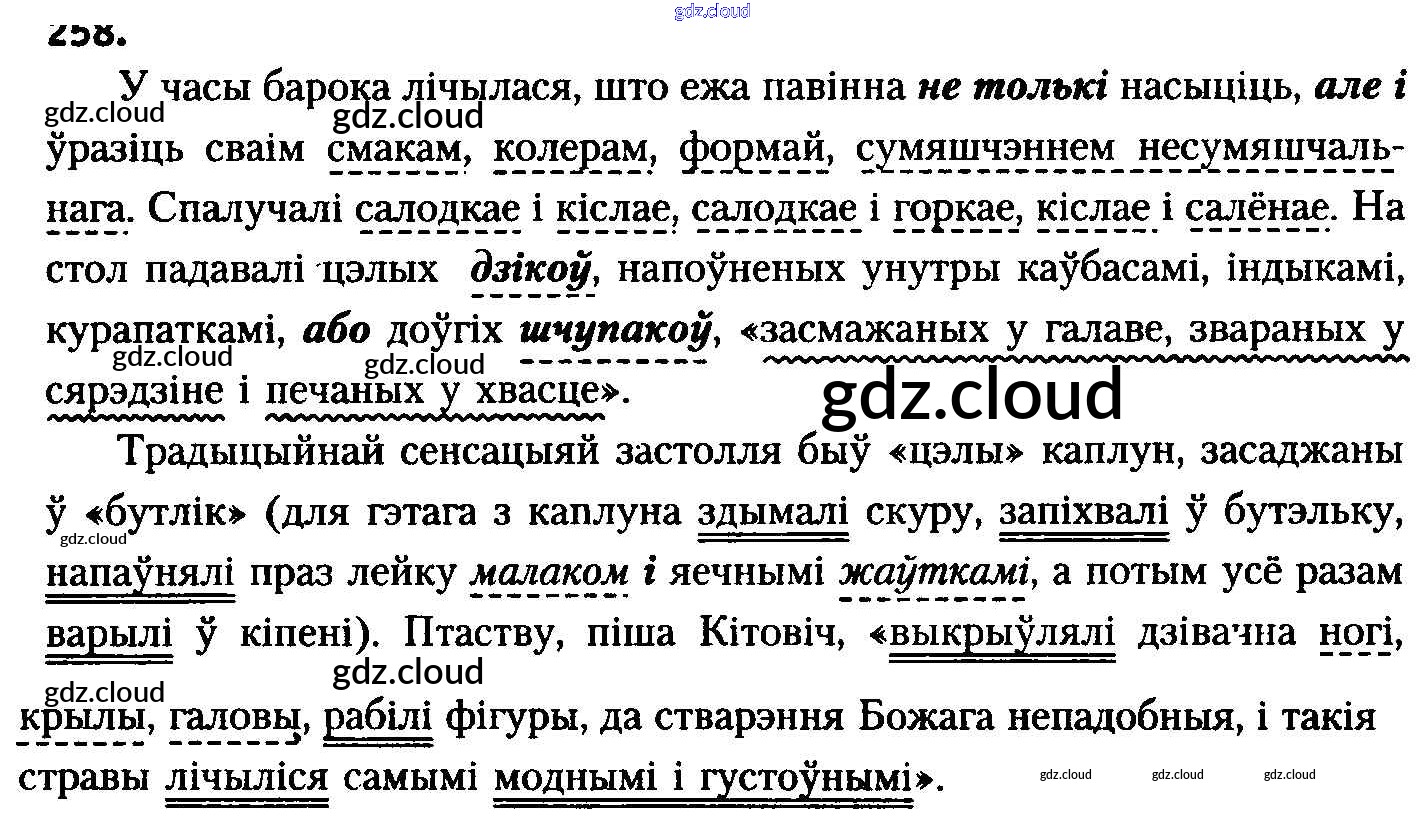 Ответ на задание 258 Учебник Белорусский язык за 8 (восьмой) класс Бадзевіч, Саматыя 2015