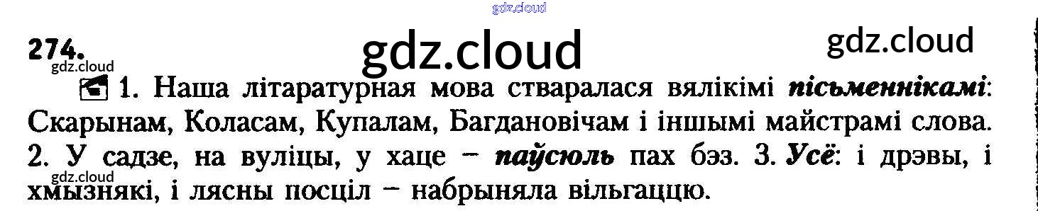 Ответ на задание 274 Учебник Белорусский язык за 8 (восьмой) класс Бадзевіч, Саматыя 2015