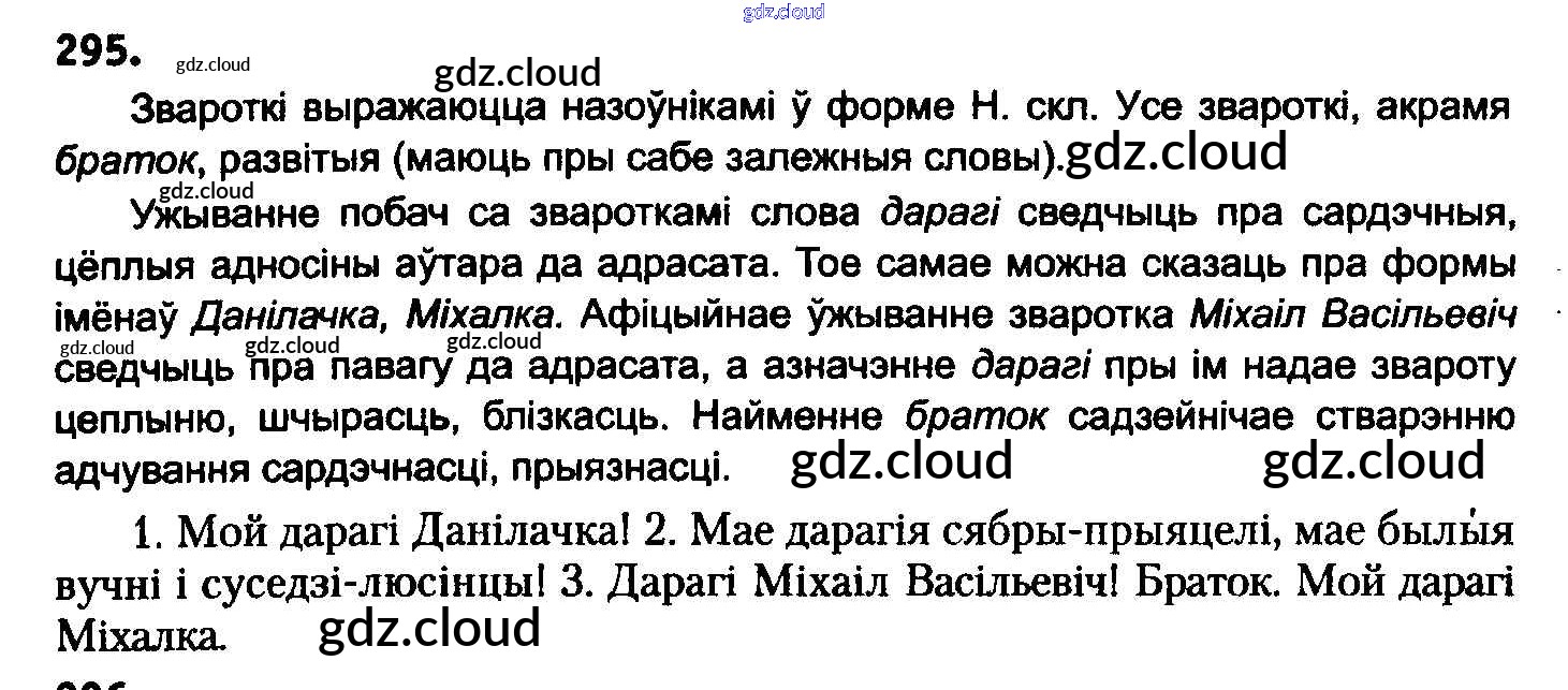Ответ на задание 295 Учебник Белорусский язык за 8 (восьмой) класс Бадзевіч, Саматыя 2015