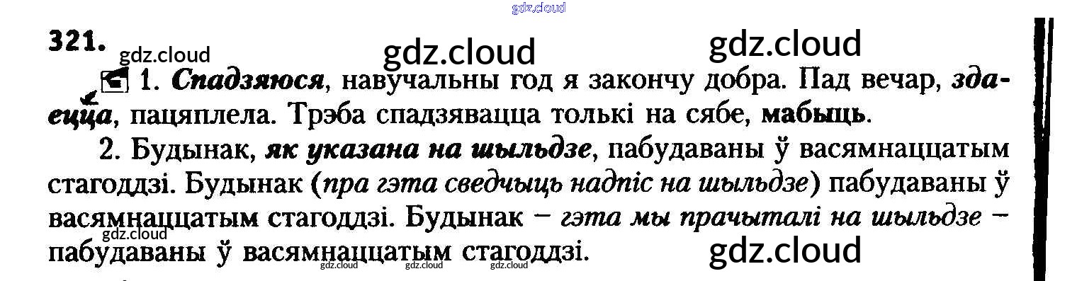 Ответ на задание 321 Учебник Белорусский язык за 8 (восьмой) класс Бадзевіч, Саматыя 2015