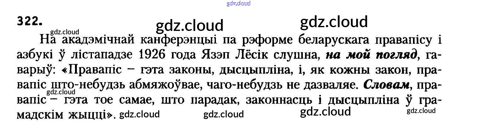 Ответ на задание 322 Учебник Белорусский язык за 8 (восьмой) класс Бадзевіч, Саматыя 2015