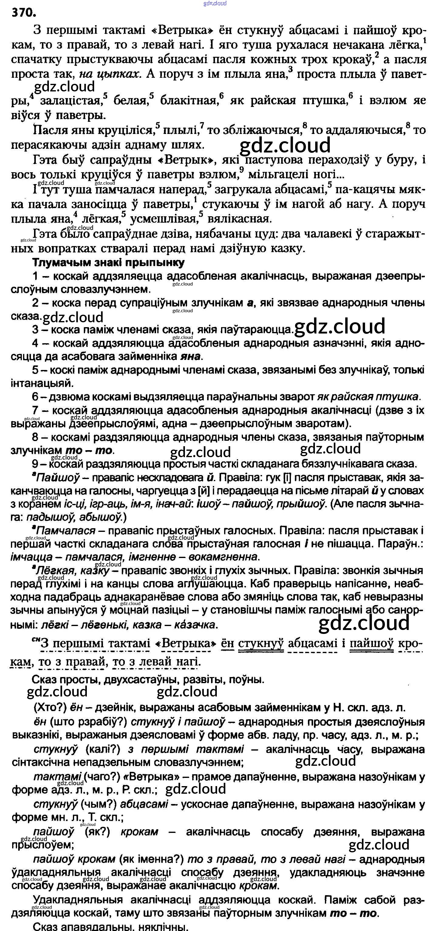 Ответ на задание 370 Учебник Белорусский язык за 8 (восьмой) класс Бадзевіч, Саматыя 2015