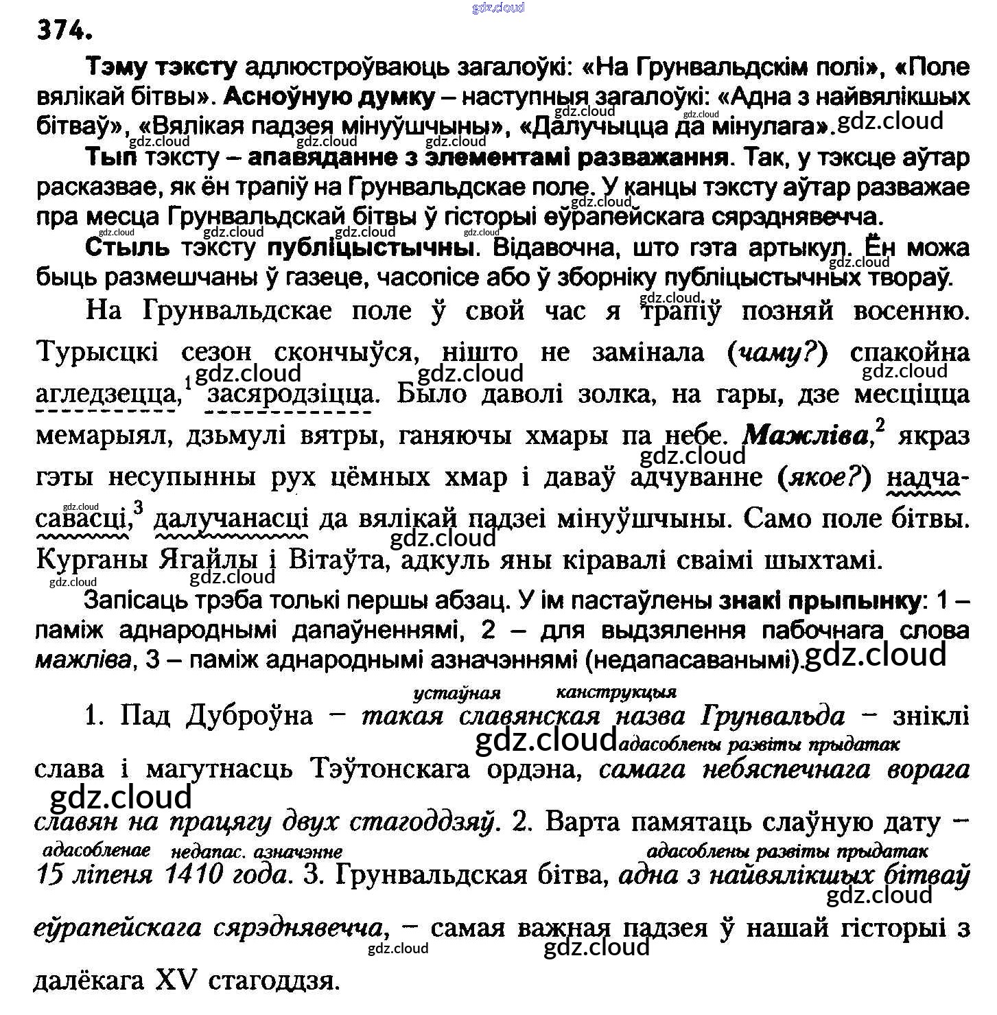 Ответ на задание 374 Учебник Белорусский язык за 8 (восьмой) класс Бадзевіч, Саматыя 2015