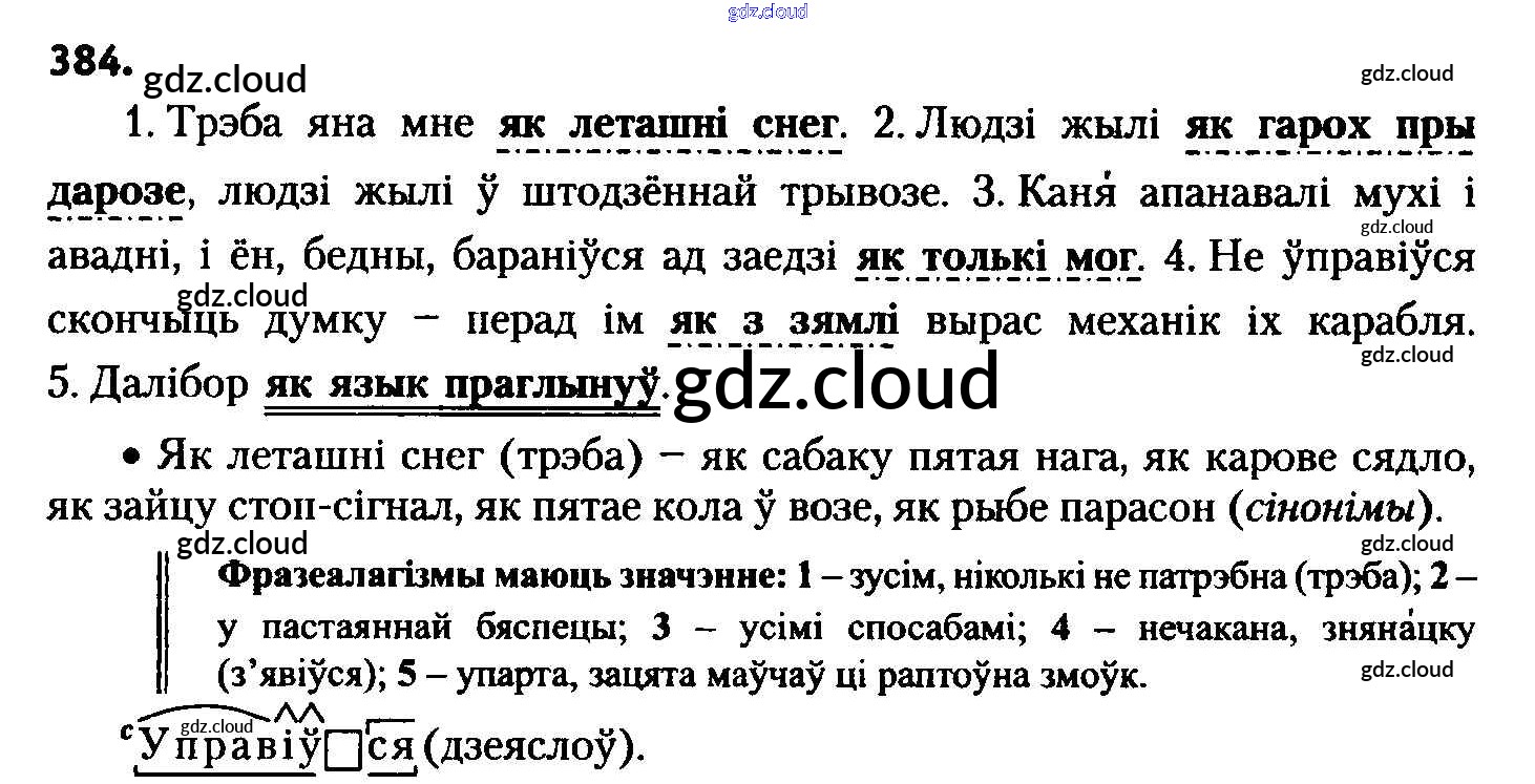 Ответ на задание 384 Учебник Белорусский язык за 8 (восьмой) класс Бадзевіч, Саматыя 2015