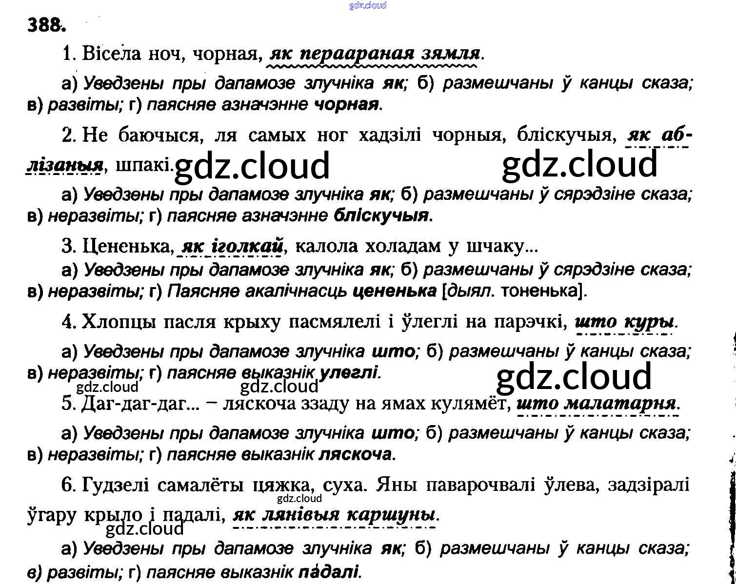 Ответ на задание 388 Учебник Белорусский язык за 8 (восьмой) класс Бадзевіч, Саматыя 2015