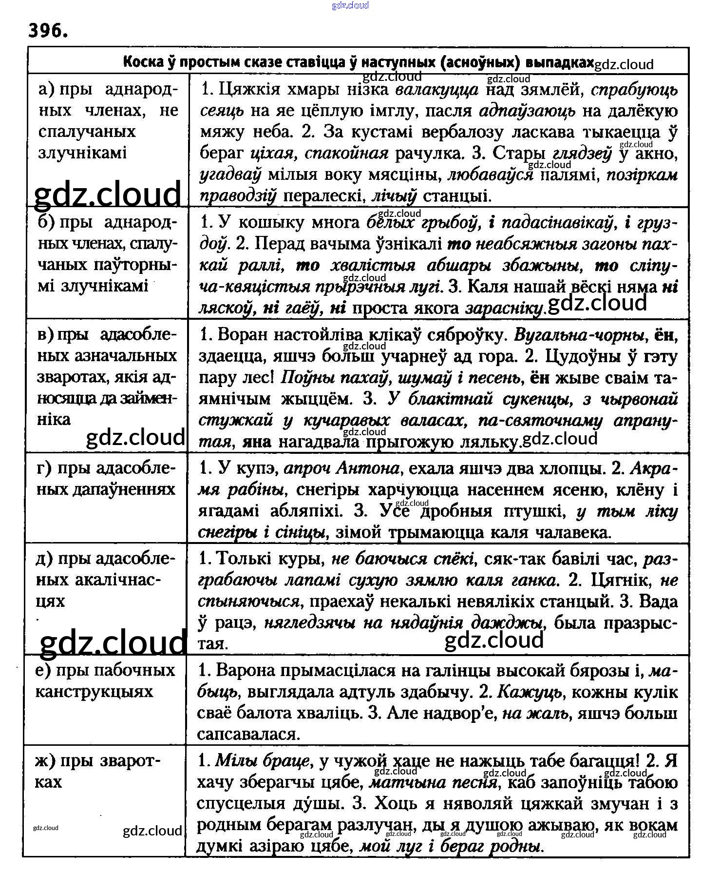Ответ на задание 396 Учебник Белорусский язык за 8 (восьмой) класс Бадзевіч, Саматыя 2015