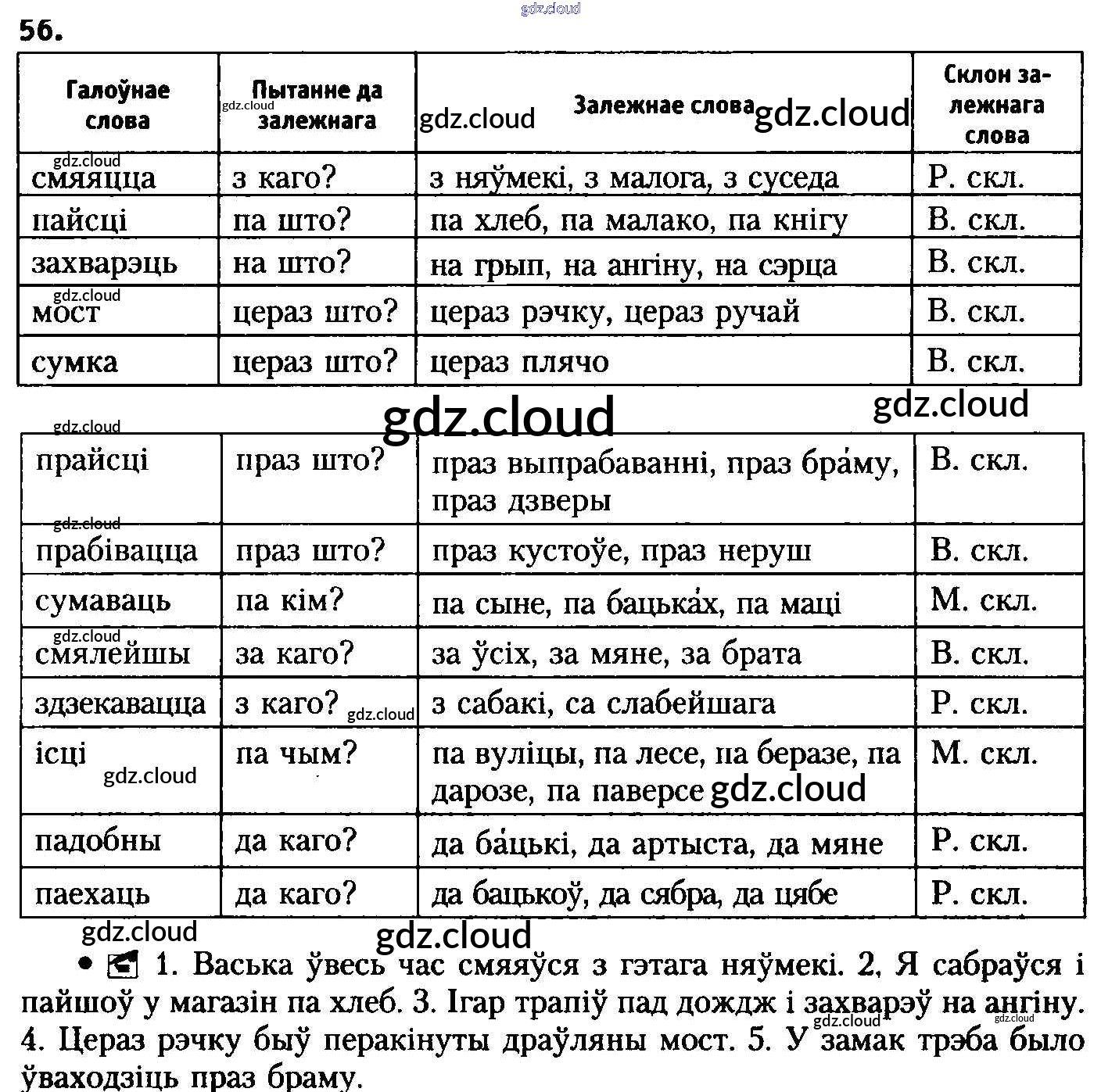 Ответ на задание 56 Учебник Белорусский язык за 8 (восьмой) класс Бадзевіч, Саматыя 2015 ФГОС онлайн и без номера телефона.