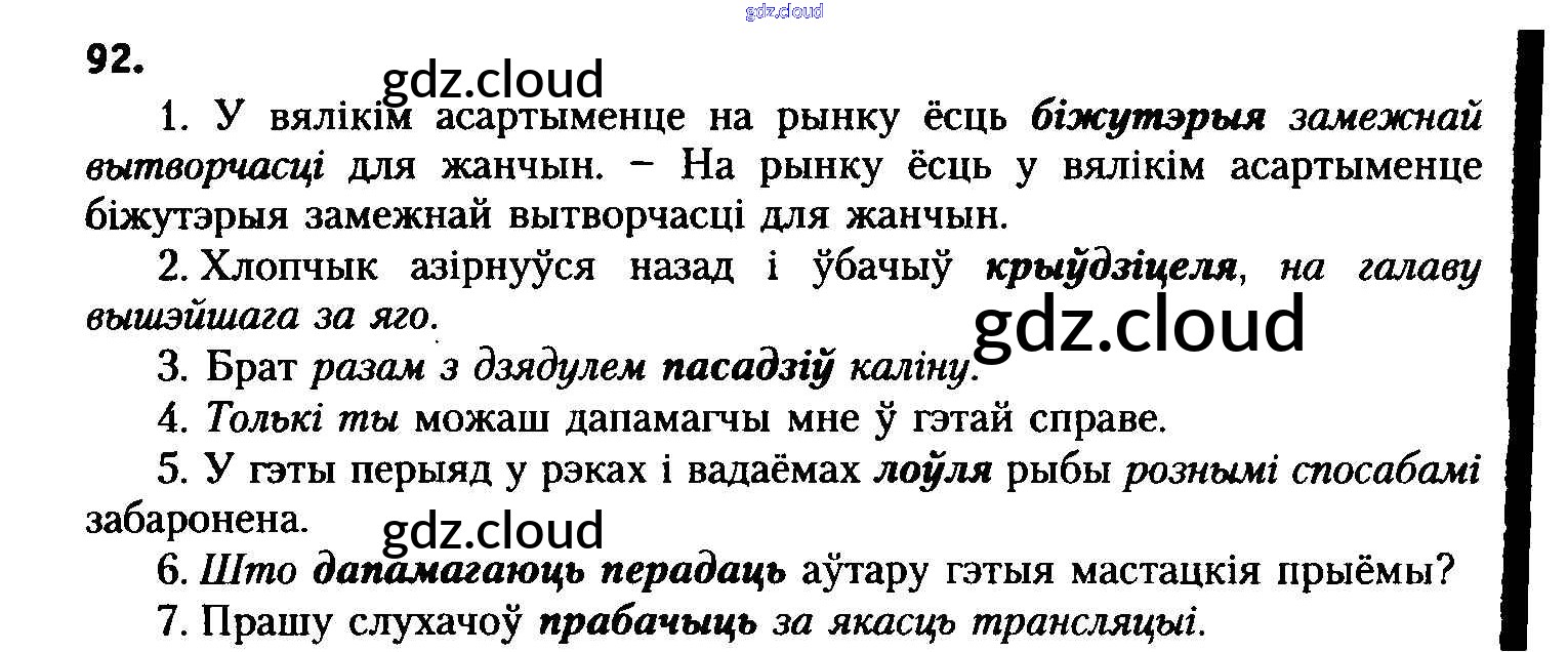 Ответ на задание 92 Учебник Белорусский язык за 8 (восьмой) класс Бадзевіч, Саматыя 2015 ФГОС онлайн и без номера телефона.