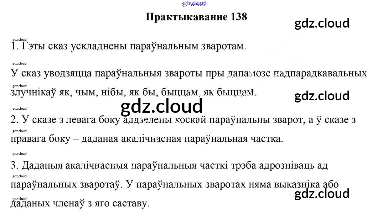 Ответ на задание 138 Учебник Белорусский язык за 9 (девятый) класс Валочка, Васюковіч, Зелянко, Якуба, Байкова 2019