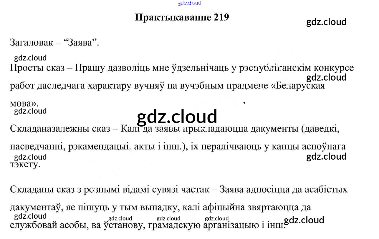 Ответ на задание 219 Учебник Белорусский язык за 9 (девятый) класс Валочка, Васюковіч, Зелянко, Якуба, Байкова 2019