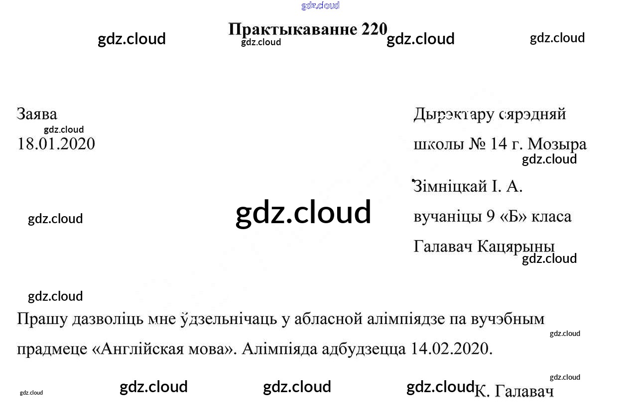Ответ на задание 220 Учебник Белорусский язык за 9 (девятый) класс Валочка, Васюковіч, Зелянко, Якуба, Байкова 2019
