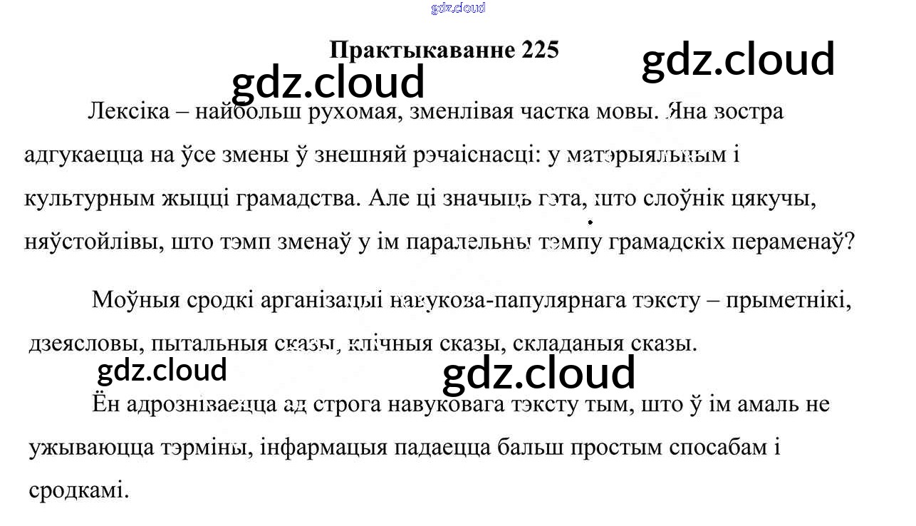 Ответ на задание 225 Учебник Белорусский язык за 9 (девятый) класс Валочка, Васюковіч, Зелянко, Якуба, Байкова 2019