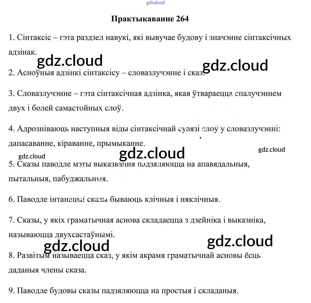 Ответ на задание 264 Учебник Белорусский язык за 9 (девятый) класс Валочка, Васюковіч, Зелянко, Якуба, Байкова 2019