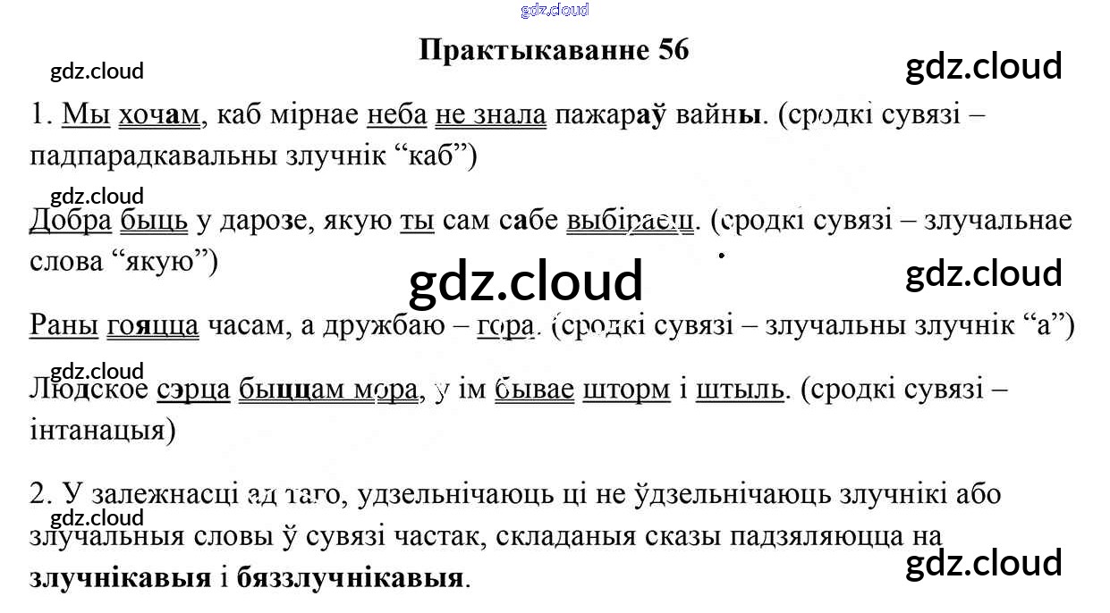 Ответ на задание 56 Учебник Белорусский язык за 9 (девятый) класс Валочка, Васюковіч, Зелянко, Якуба, Байкова 2019