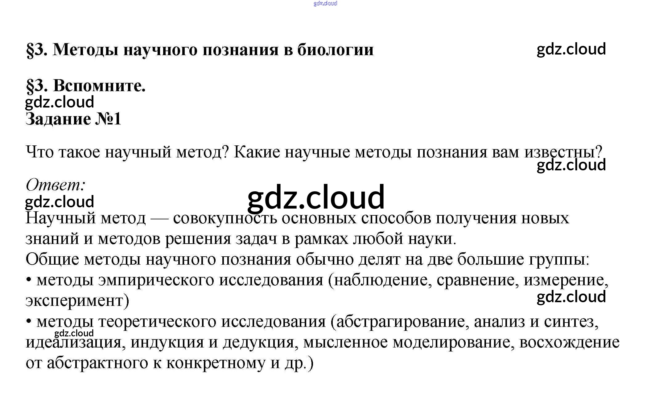 Вспомните Ответы к §3 по Биологии 10 класс Учебник Пасечник Линия жизни Просвещение