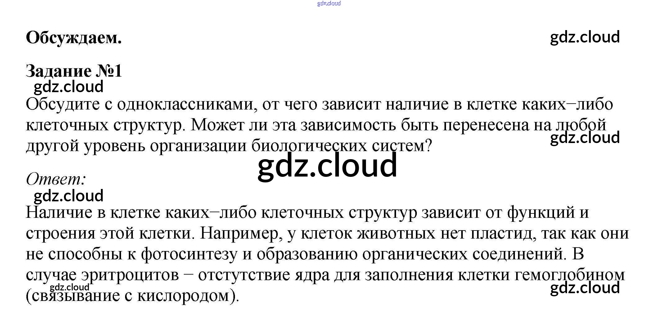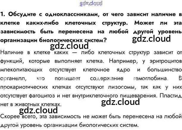 Ответ на задание 1 Учебник Биология за 10 (десятый) класс Пасечник, Каменский, Рубцов Линия жизни 2018
