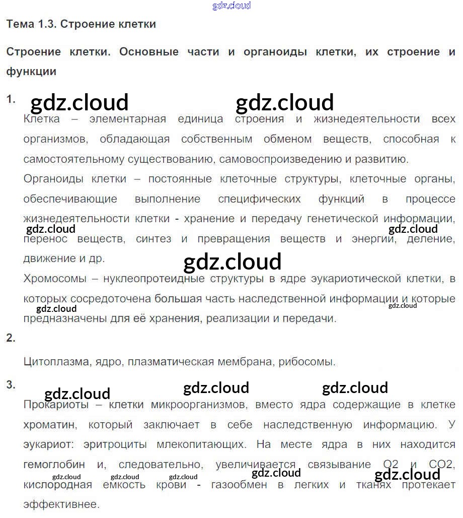 Ответы к Главе 1. Клетка по Биологии 10, 11 класс Рабочая тетрадь Пасечник УМК Базовый уровень Дрофа
