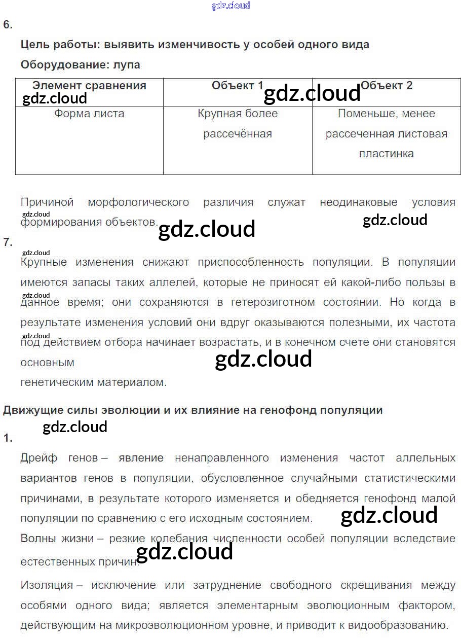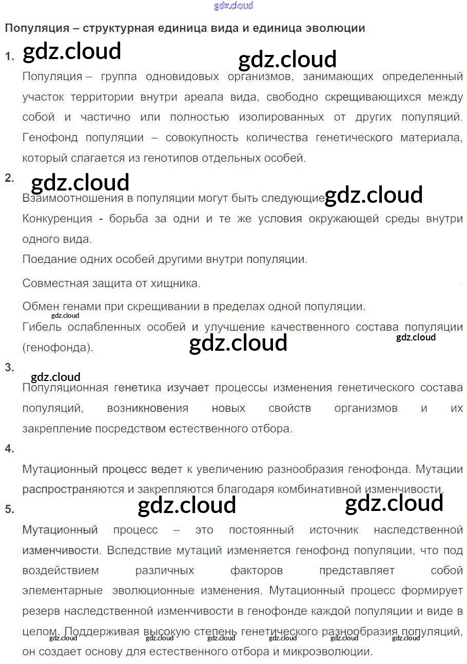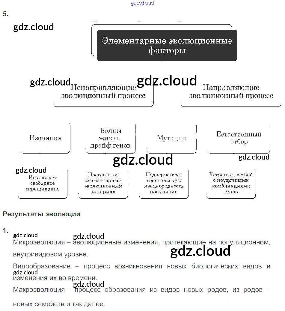 Ответы к Главе 5. Основы учения об эволюции по Биологии 10, 11 класс Рабочая тетрадь Пасечник УМК Базовый уровень Дрофа