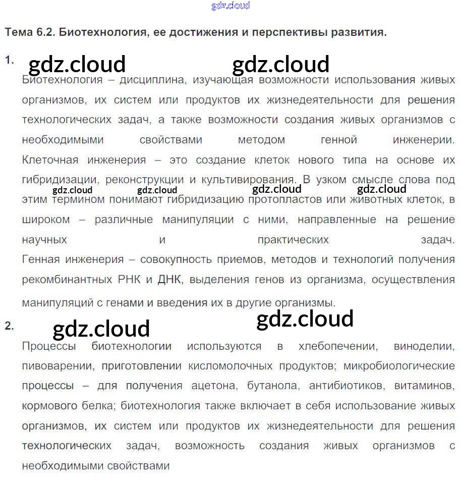 Ответы к Главе 6.. Основы селекции и биотехнологии по Биологии 10, 11 класс Рабочая тетрадь Пасечник УМК Базовый уровень Дрофа